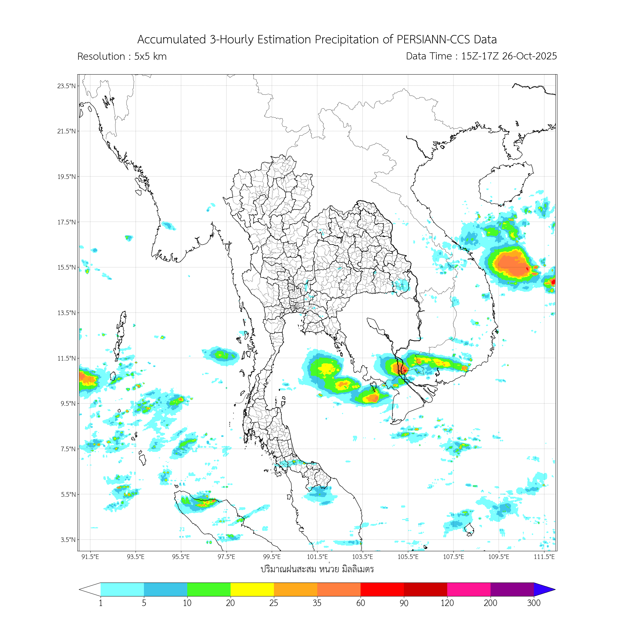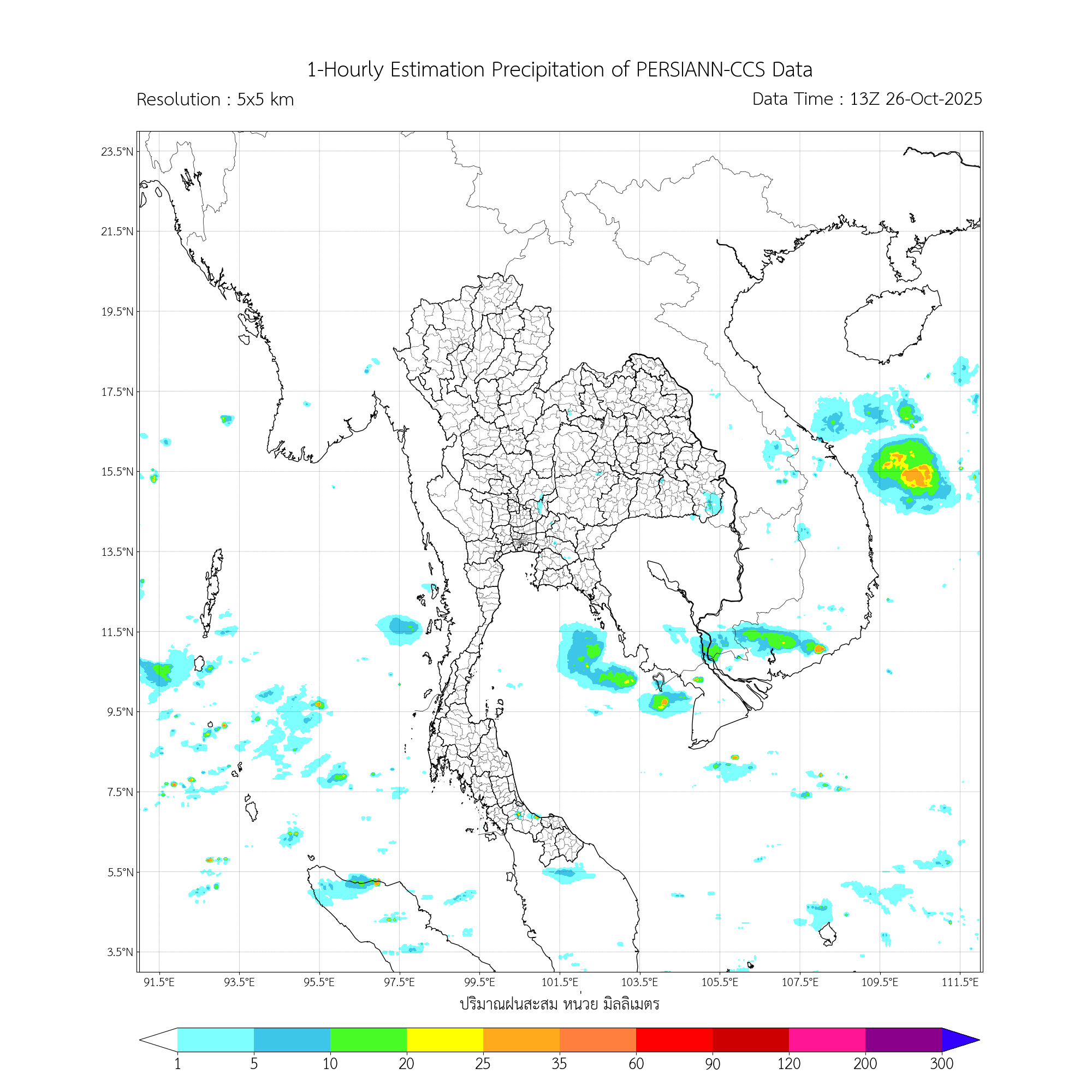 การประมาณค่าฝนจากดาวเทียม เมื่อวาน (25/10/2025)