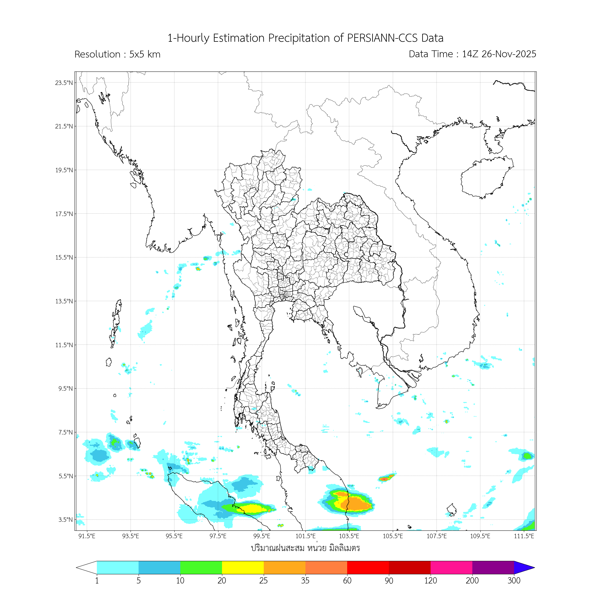 การประมาณค่าฝนจากดาวเทียม เมื่อวาน (25/11/2025)