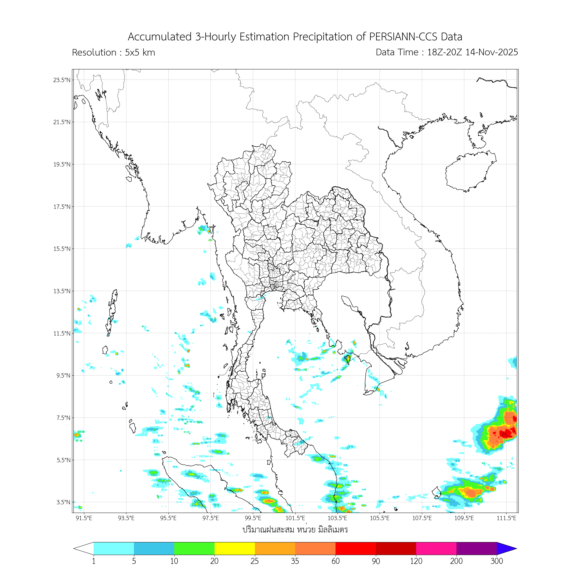 การประมาณค่าฝนจากดาวเทียม เมื่อวาน (14/11/2025)
