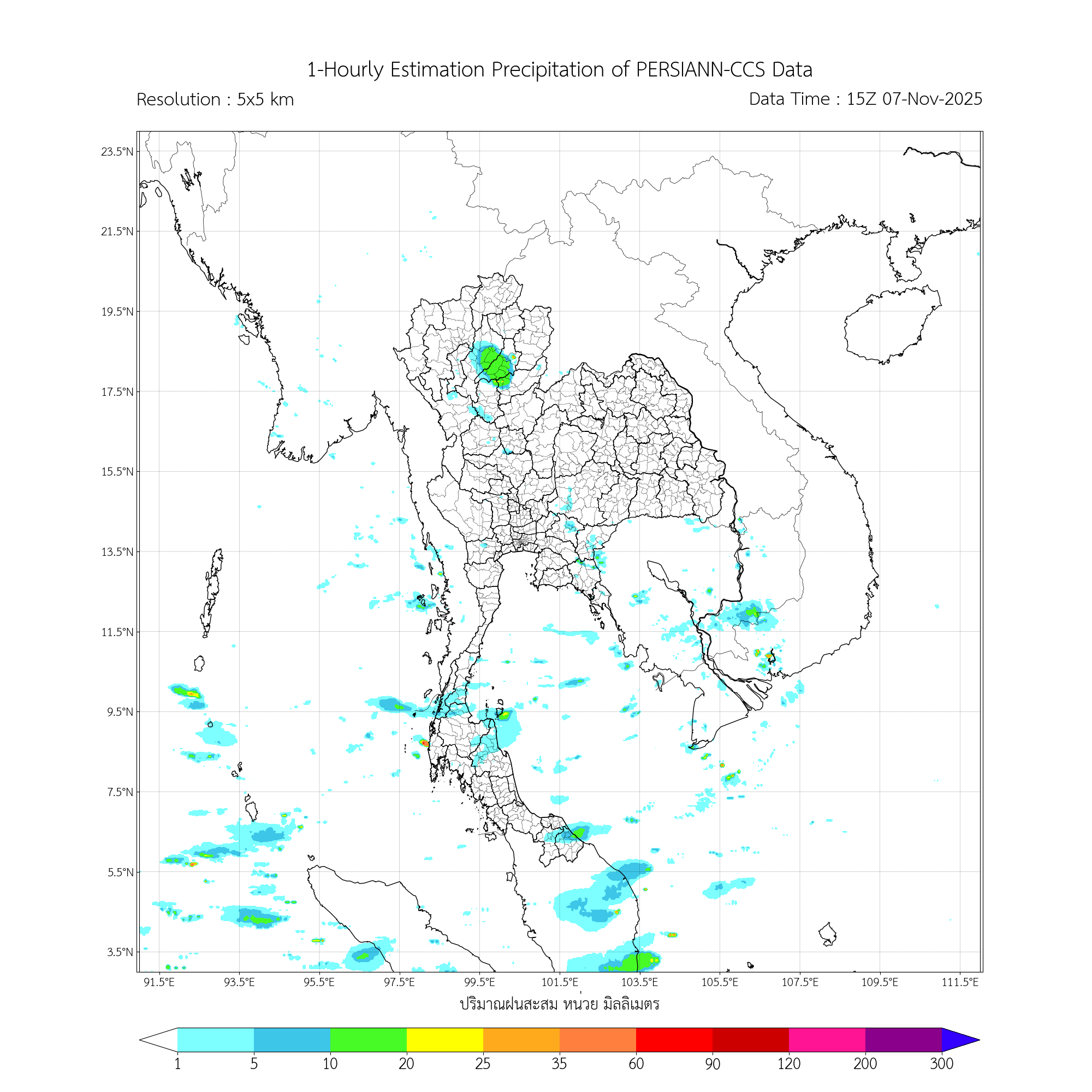 การประมาณค่าฝนจากดาวเทียม เมื่อวาน (07/11/2025)