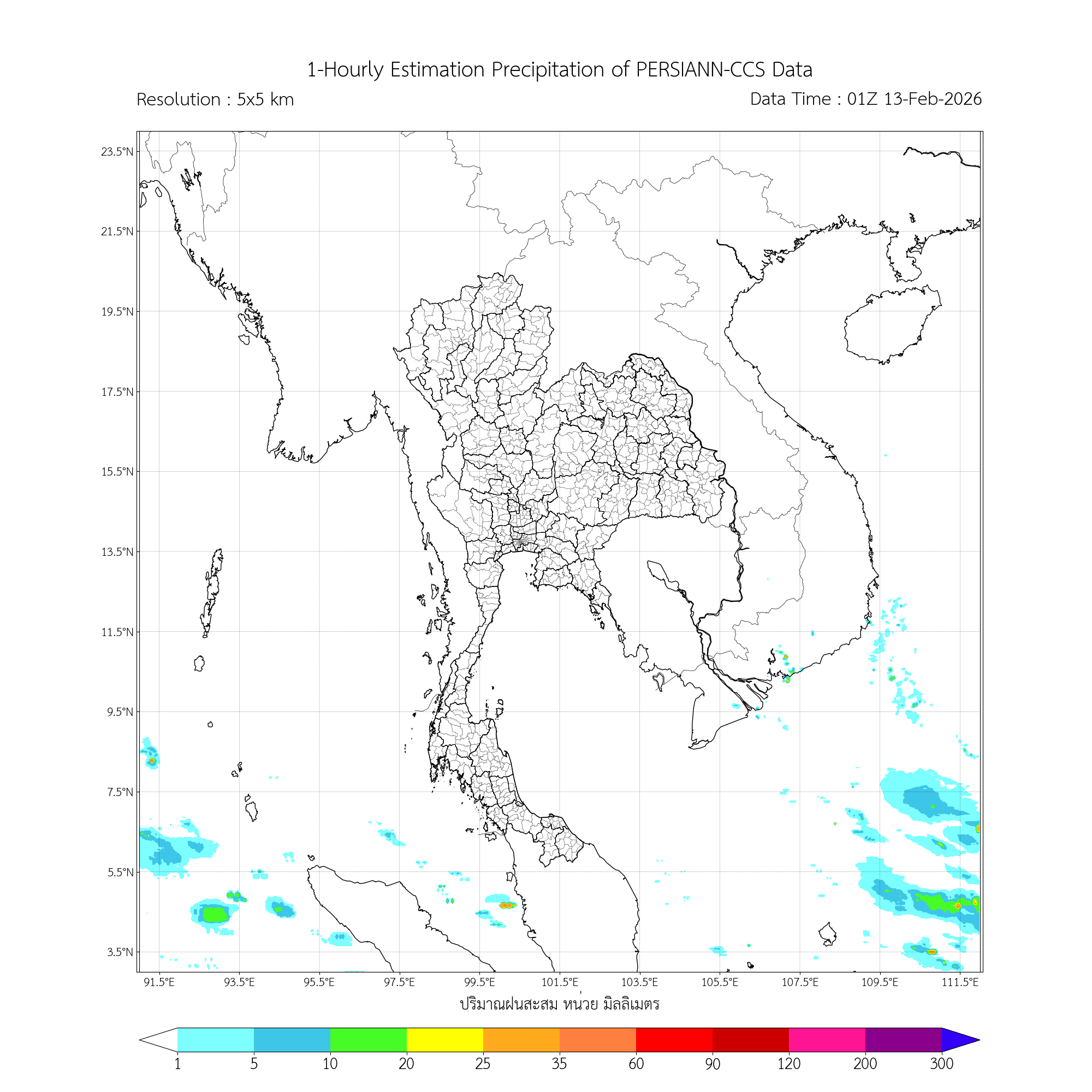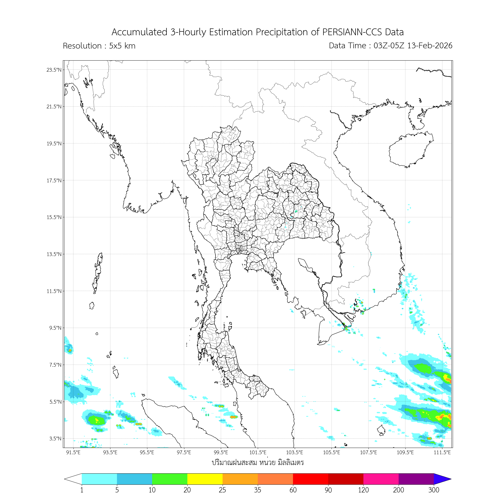 การประมาณค่าฝนจากดาวเทียม เมื่อวาน (12/02/2026)