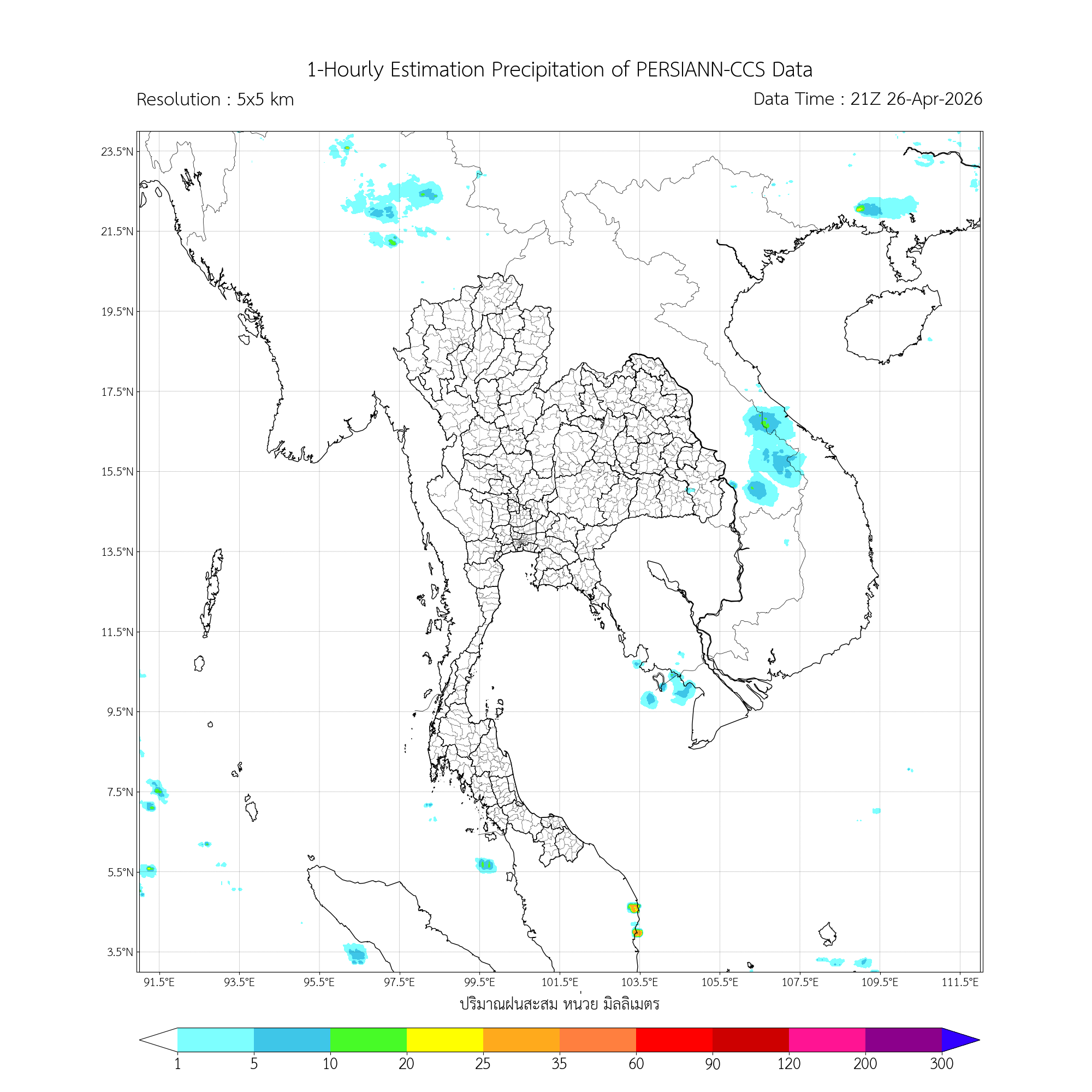 การประมาณค่าฝนจากดาวเทียม เมื่อวาน (26/04/2026)
