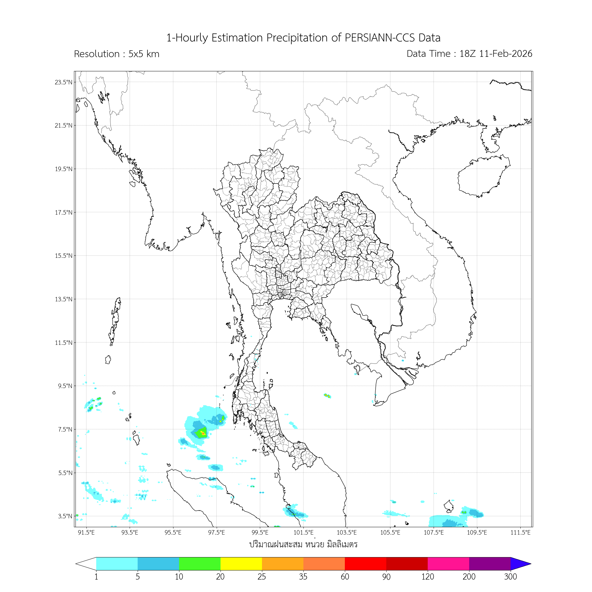 การประมาณค่าฝนจากดาวเทียม เมื่อวาน (11/02/2026)