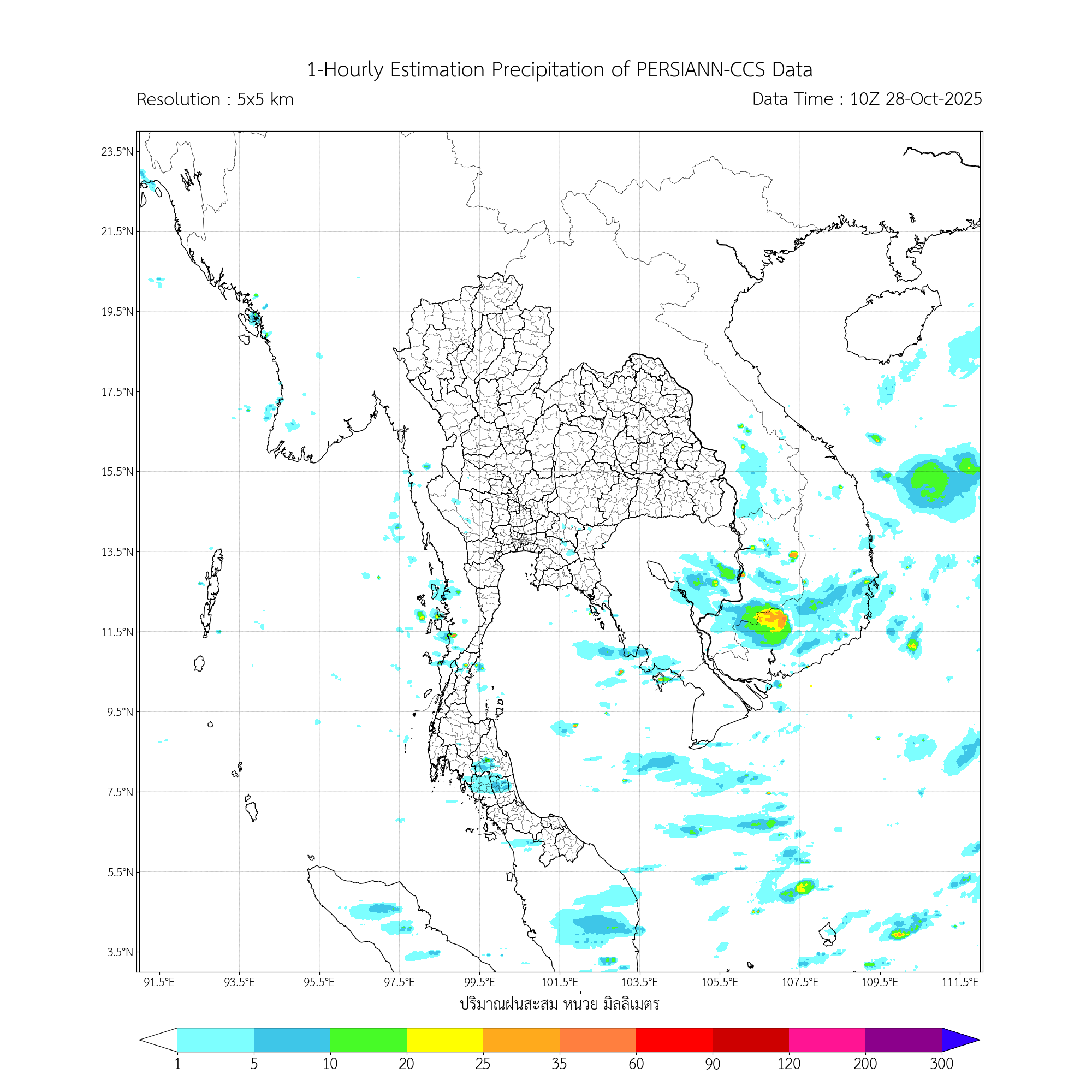 การประมาณค่าฝนจากดาวเทียม เมื่อวาน (27/10/2025)