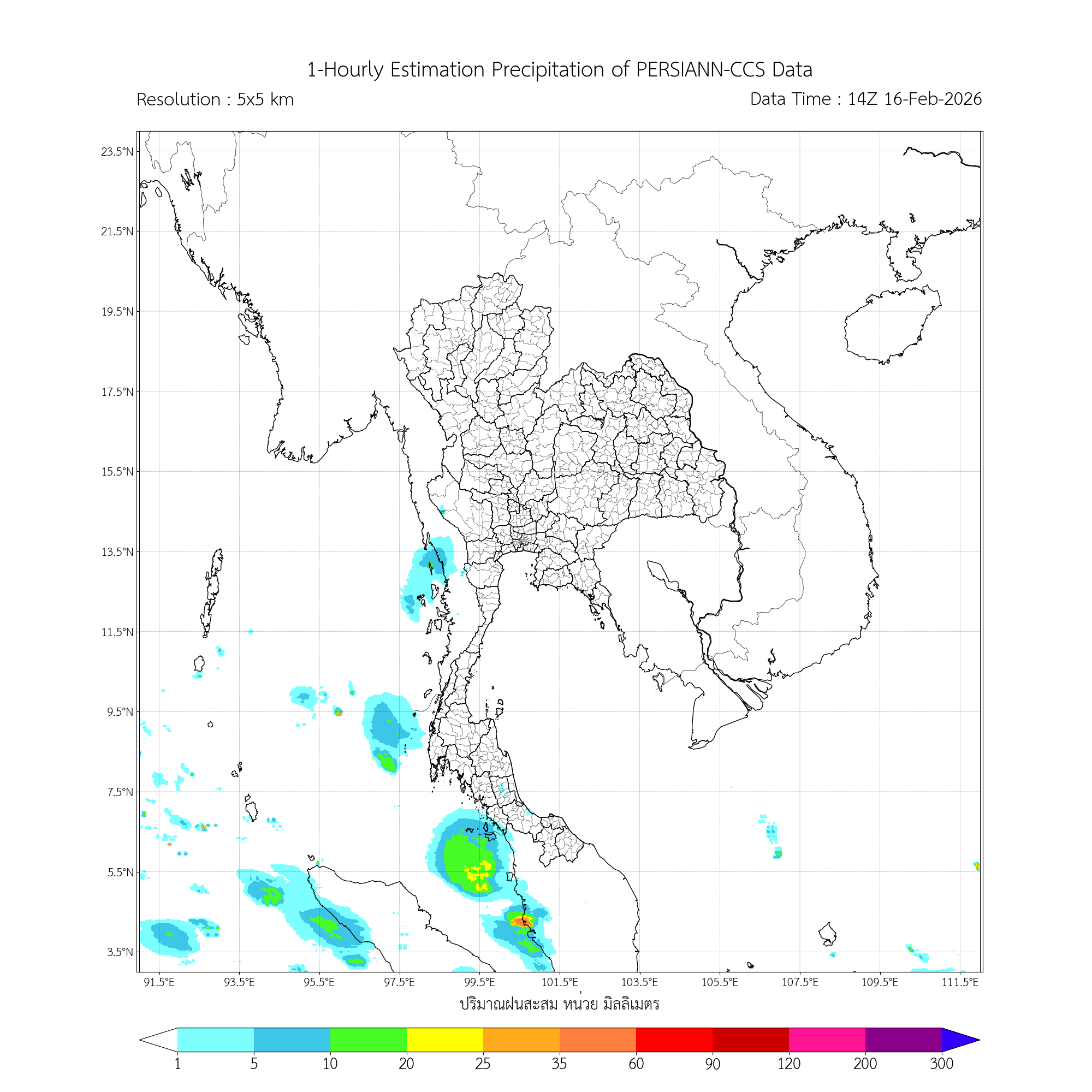 การประมาณค่าฝนจากดาวเทียม เมื่อวาน (15/02/2026)