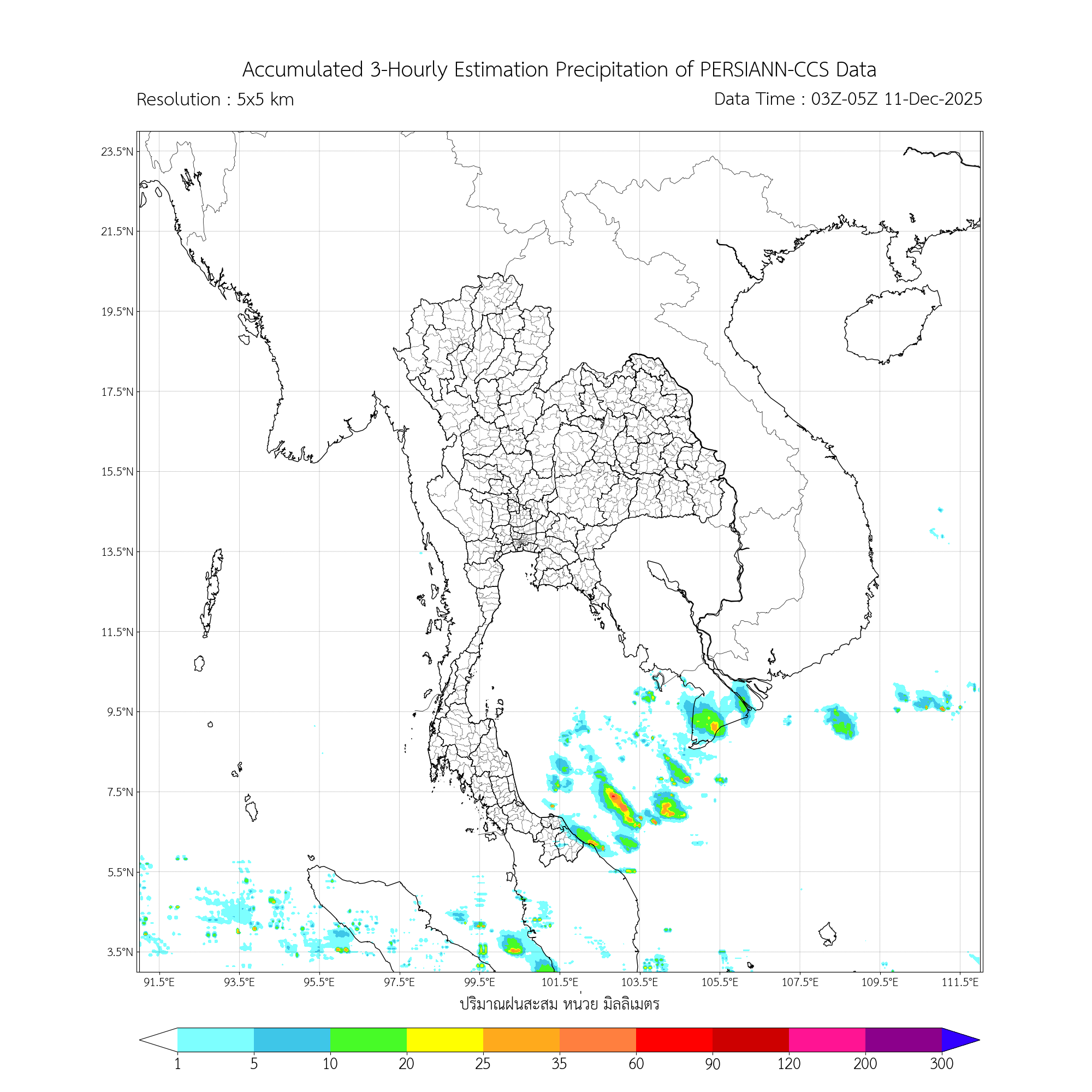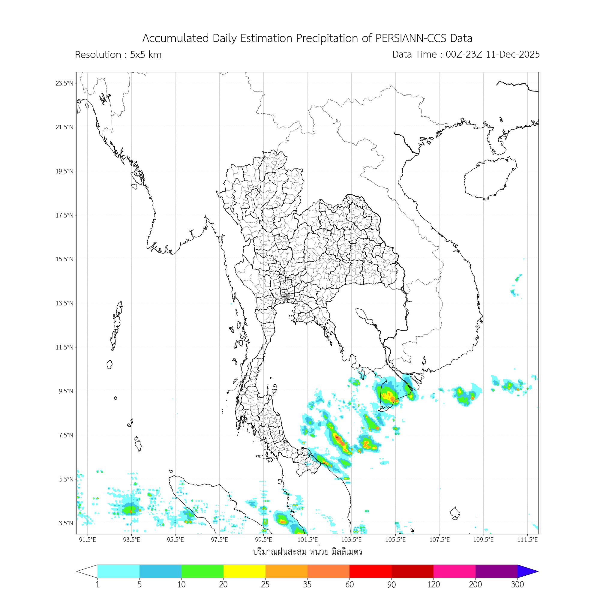 การประมาณค่าฝนจากดาวเทียม เมื่อวาน (10/12/2025)