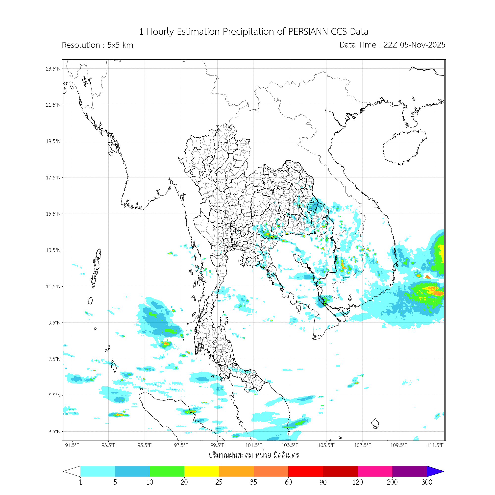 การประมาณค่าฝนจากดาวเทียม เมื่อวาน (05/11/2025)