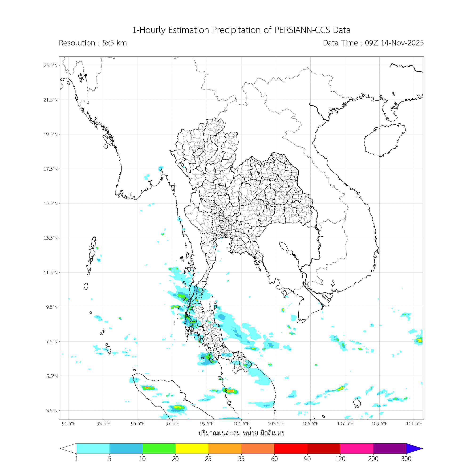 การประมาณค่าฝนจากดาวเทียม เมื่อวาน (13/11/2025)