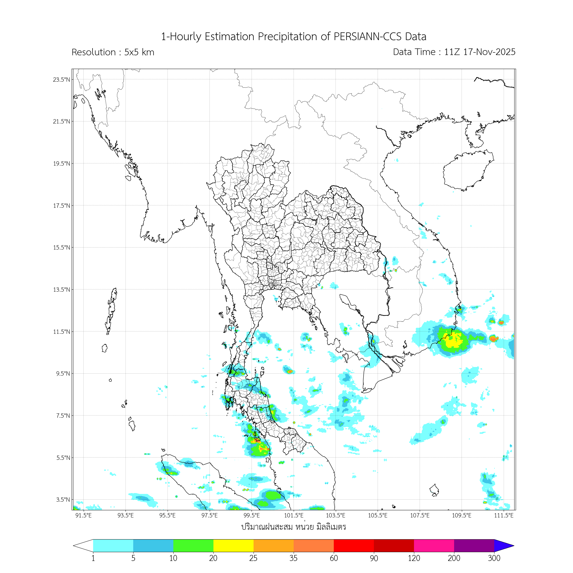 การประมาณค่าฝนจากดาวเทียม เมื่อวาน (16/11/2025)
