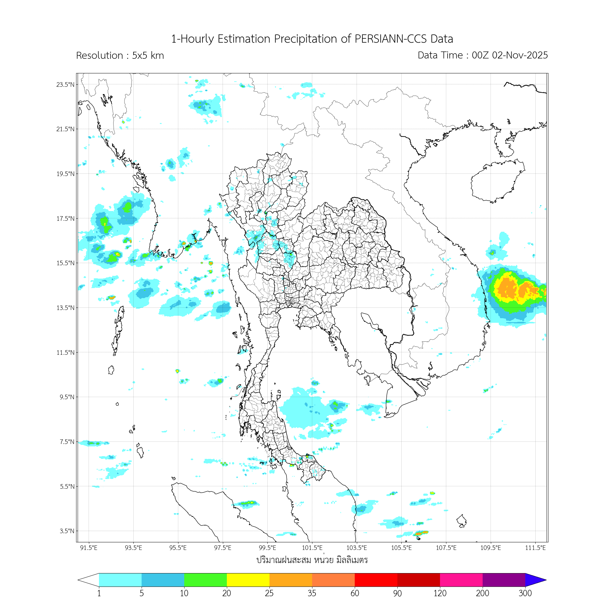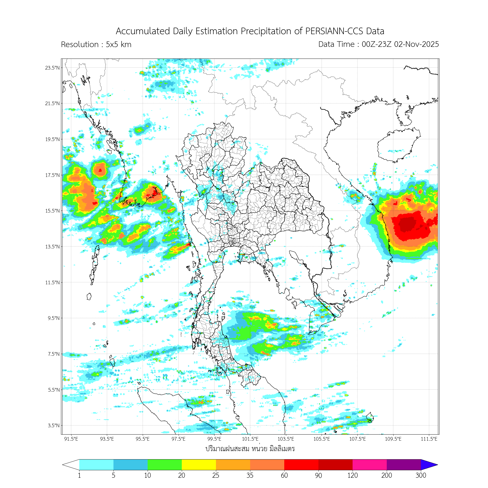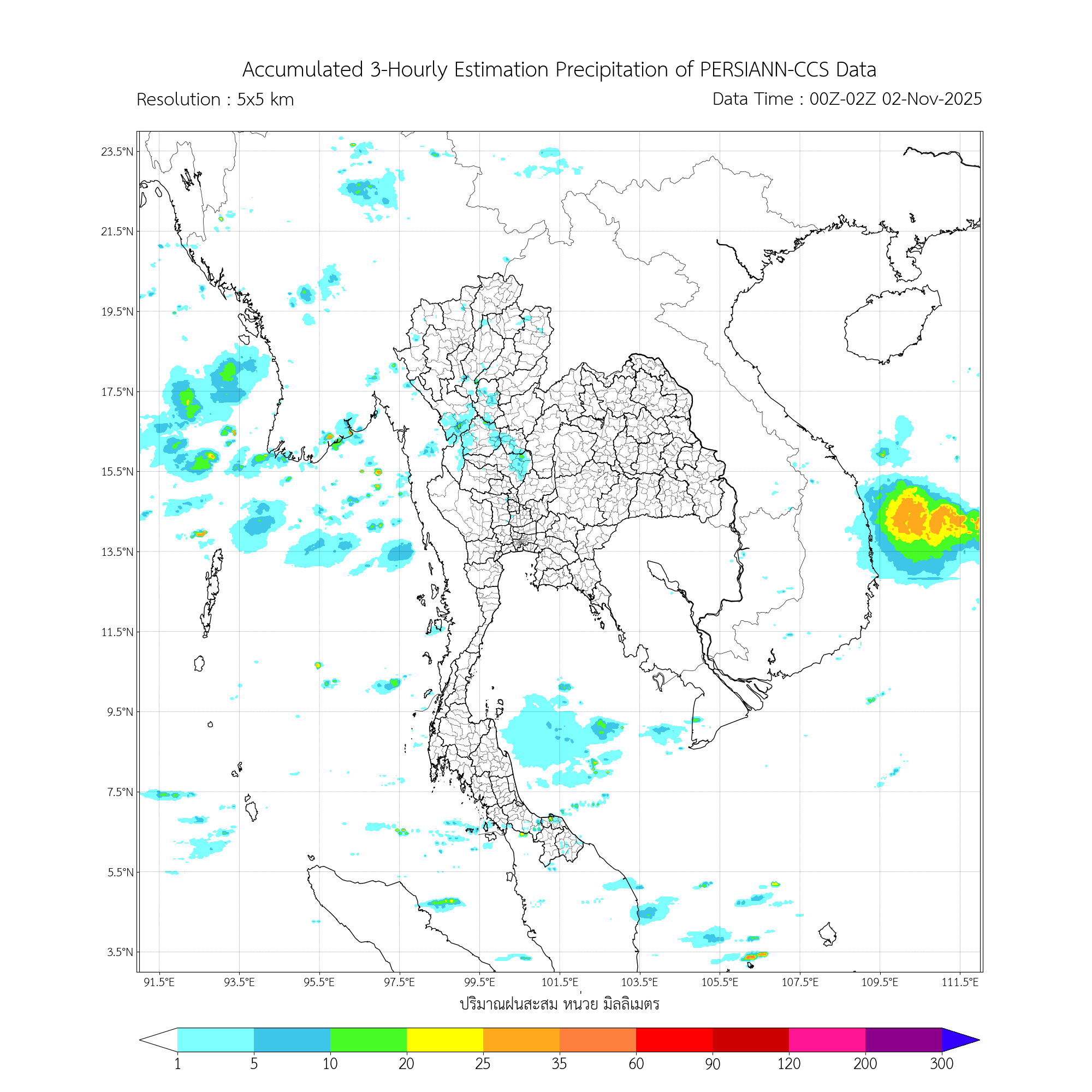 การประมาณค่าฝนจากดาวเทียม เมื่อวาน (01/11/2025)