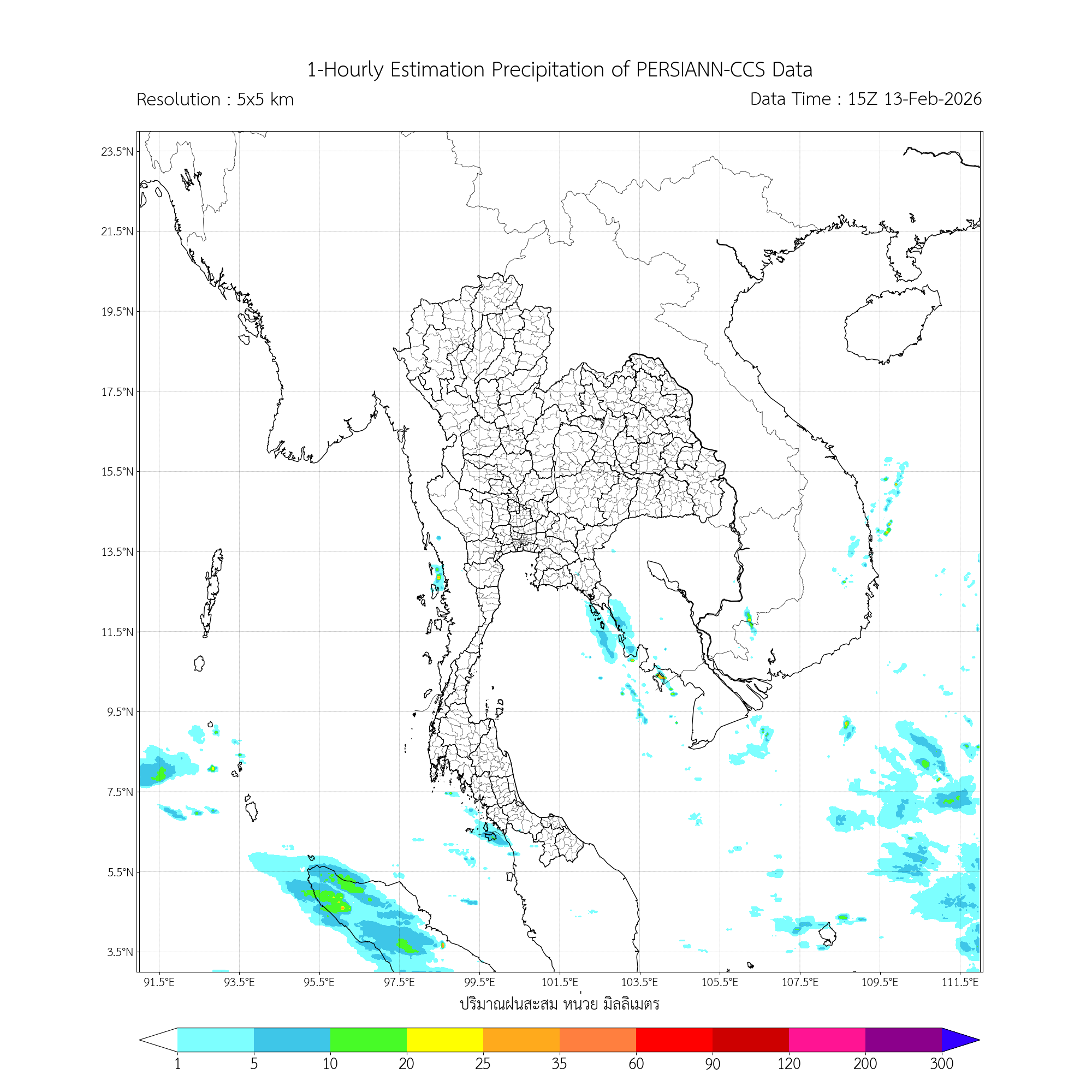 การประมาณค่าฝนจากดาวเทียม เมื่อวาน (13/02/2026)