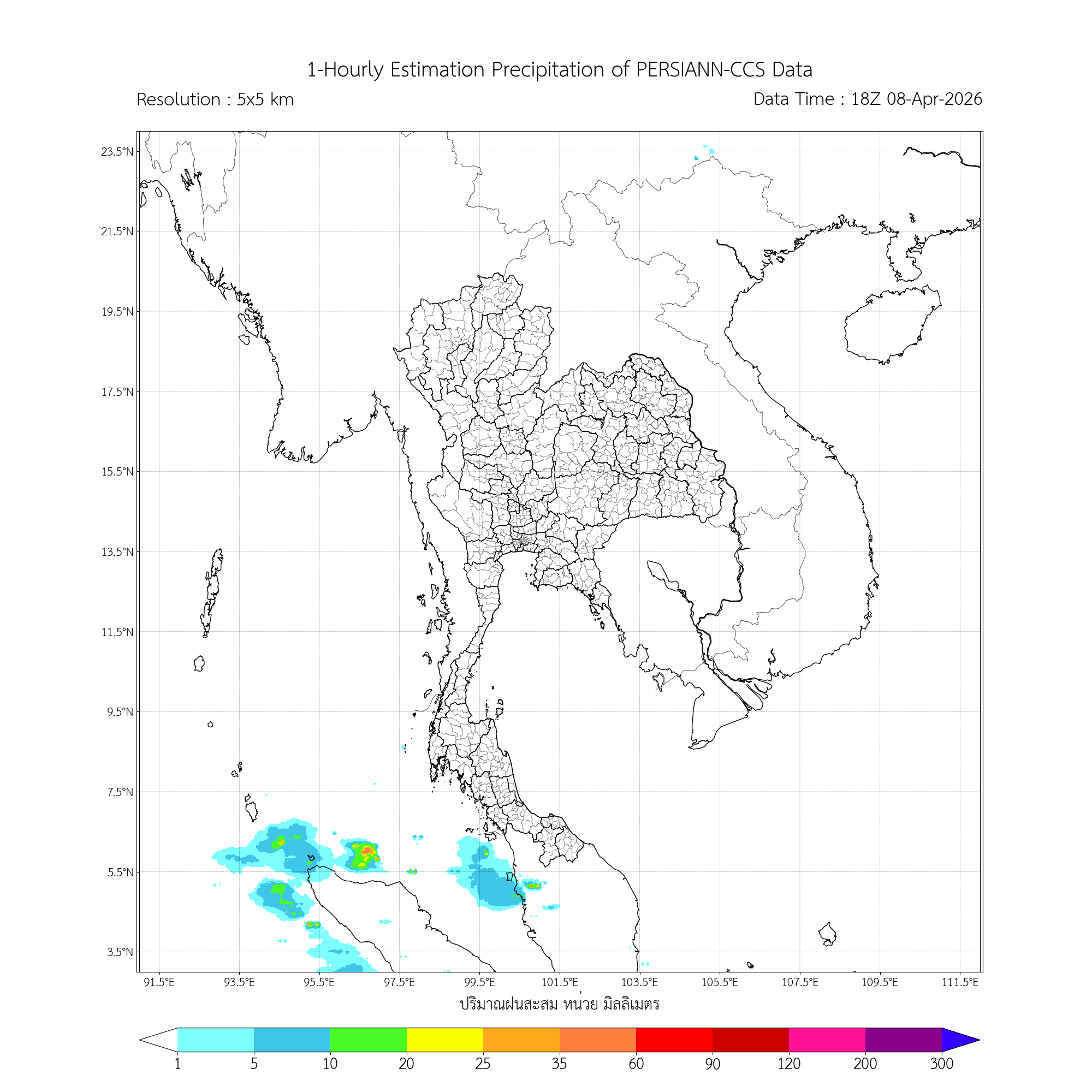 การประมาณค่าฝนจากดาวเทียม เมื่อวาน (08/04/2026)