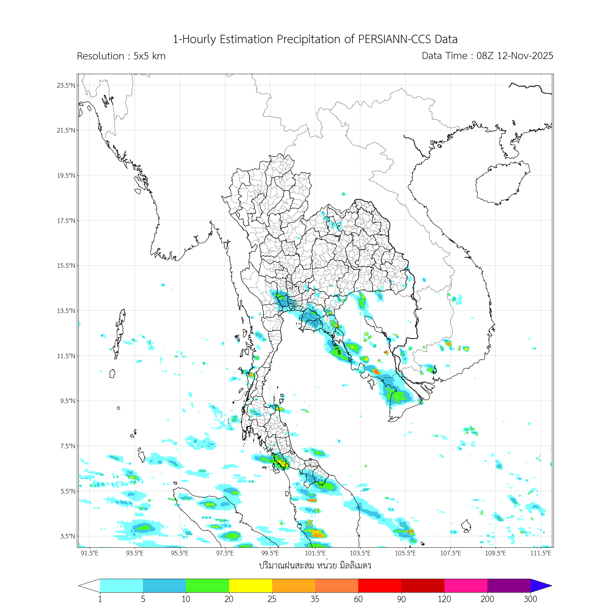 การประมาณค่าฝนจากดาวเทียม เมื่อวาน (11/11/2025)