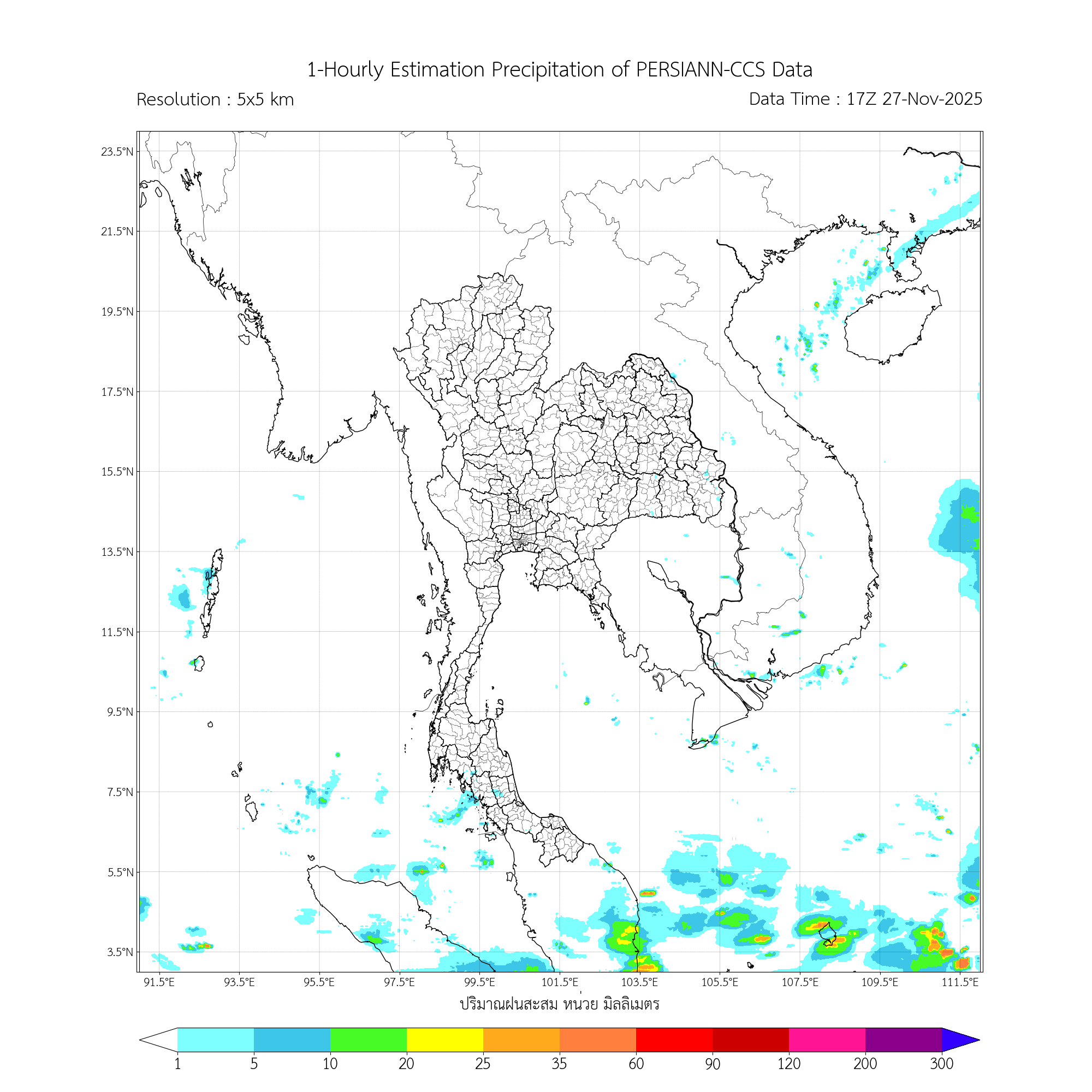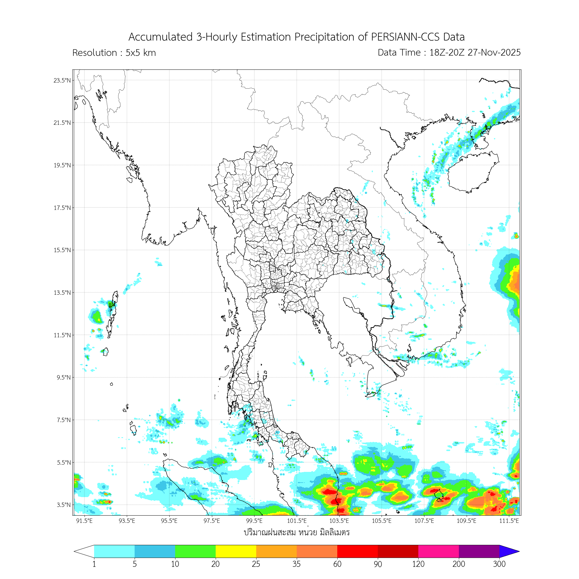การประมาณค่าฝนจากดาวเทียม เมื่อวาน (27/11/2025)
