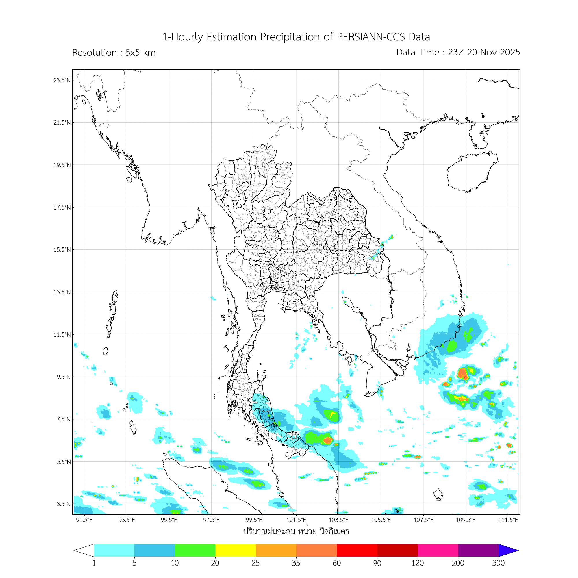 การประมาณค่าฝนจากดาวเทียม เมื่อวาน (20/11/2025)