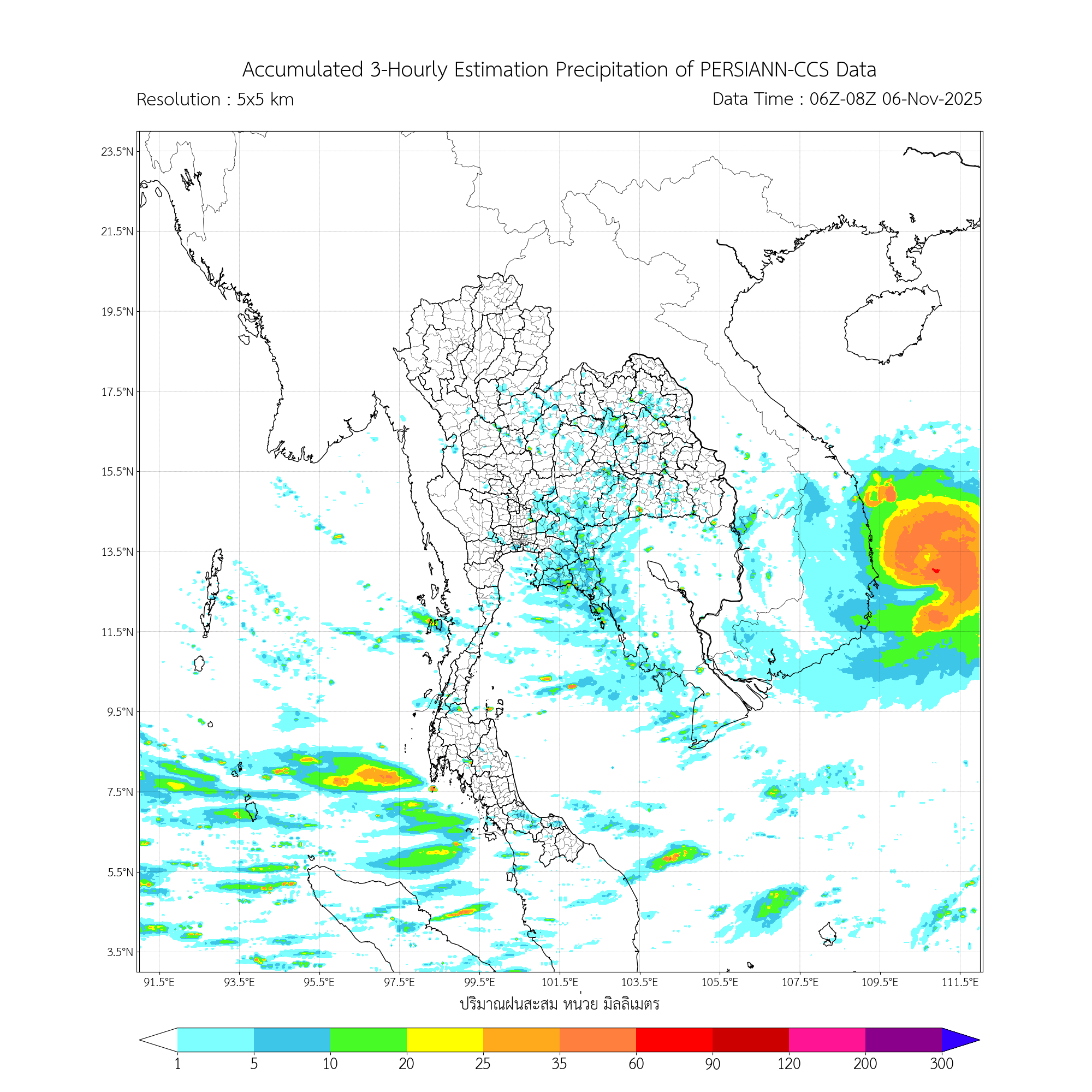การประมาณค่าฝนจากดาวเทียม เมื่อวาน (05/11/2025)