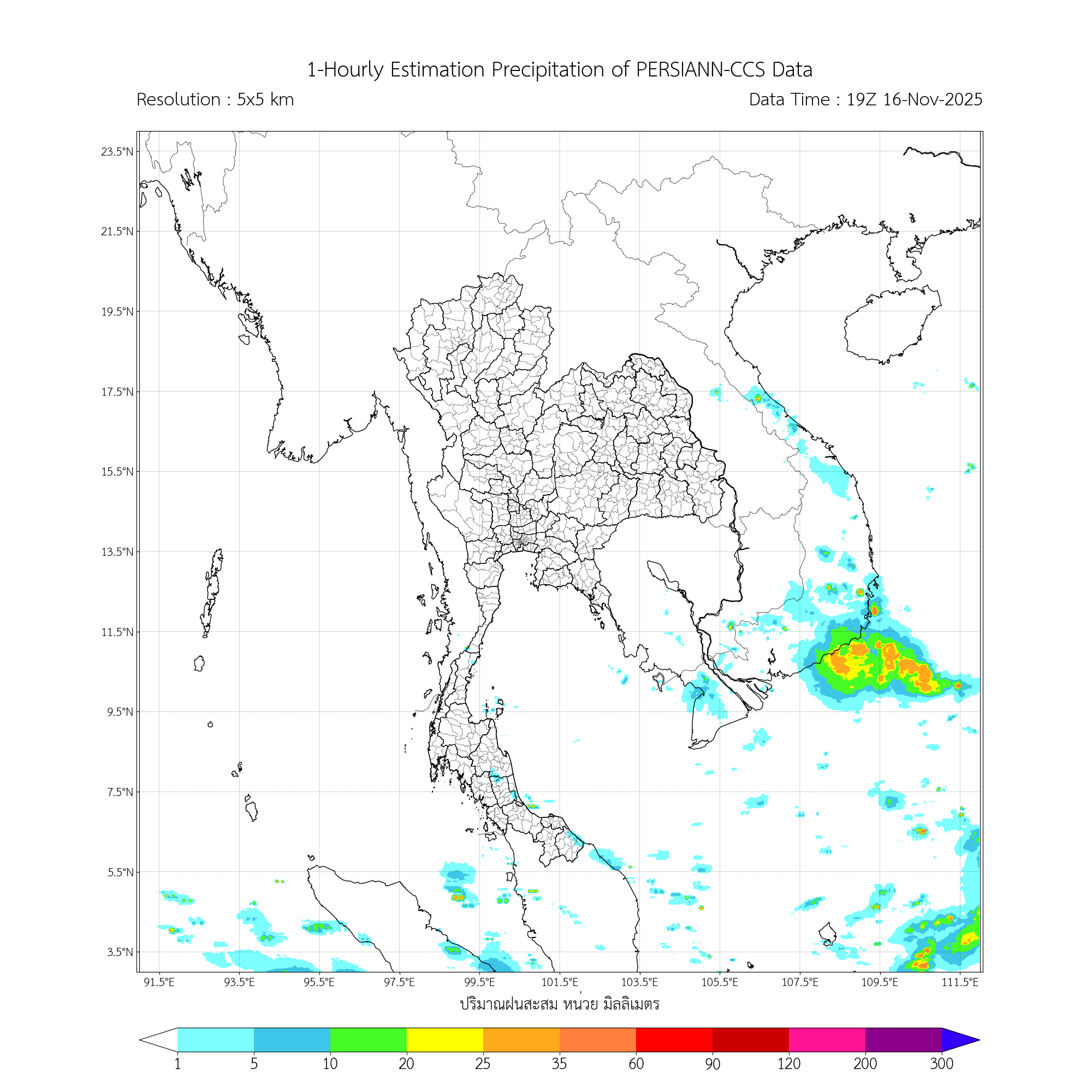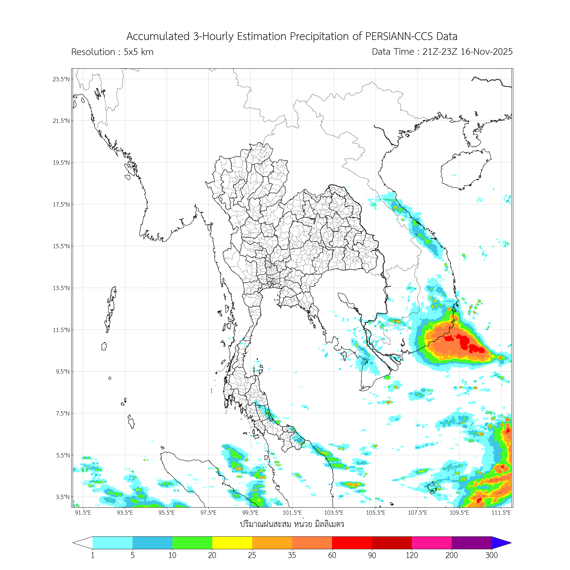 การประมาณค่าฝนจากดาวเทียม เมื่อวาน (16/11/2025)