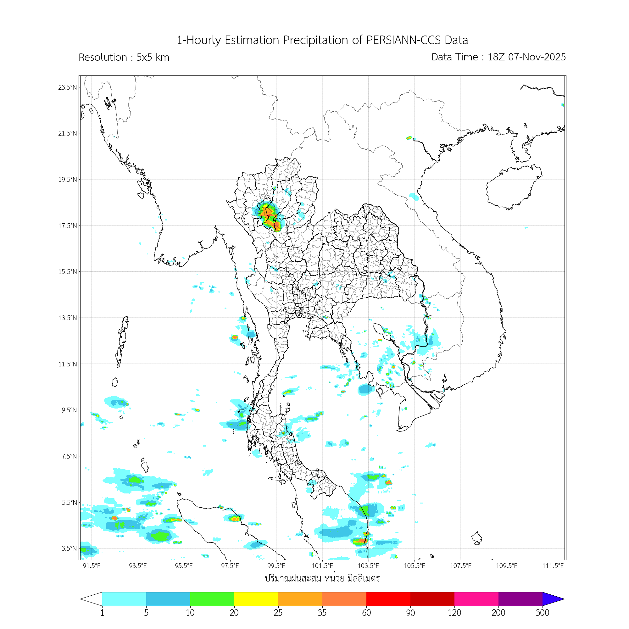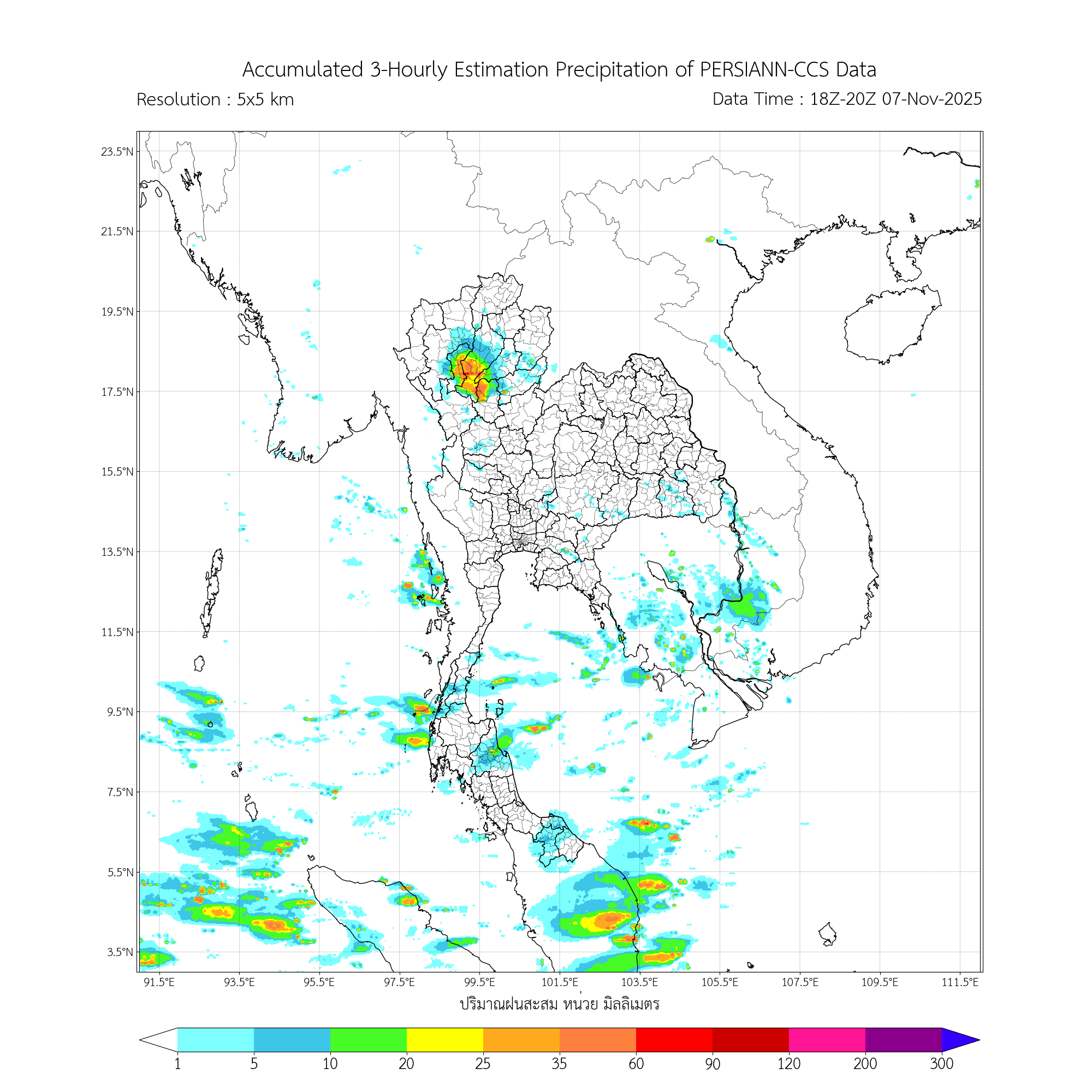 การประมาณค่าฝนจากดาวเทียม เมื่อวาน (07/11/2025)