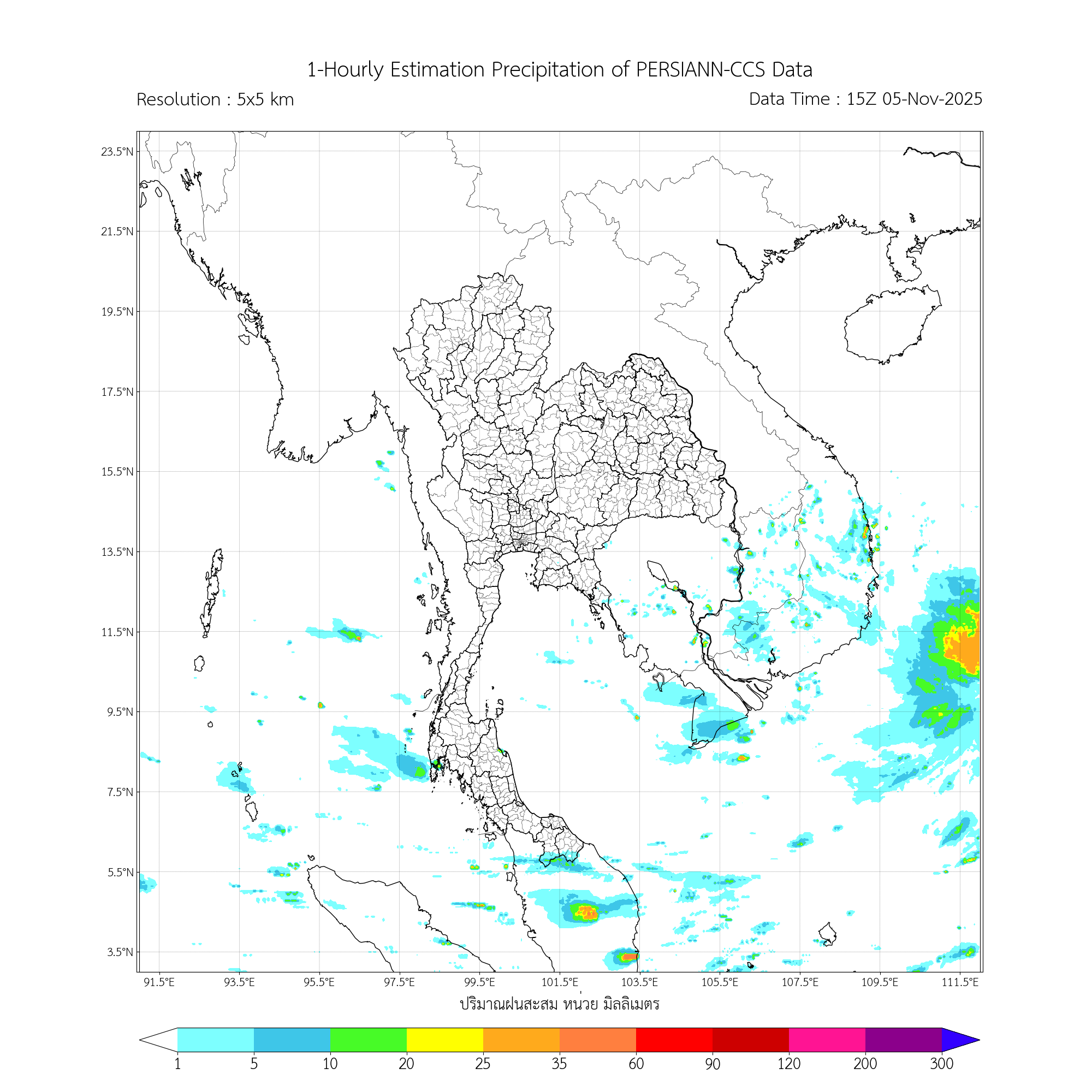 การประมาณค่าฝนจากดาวเทียม เมื่อวาน (05/11/2025)