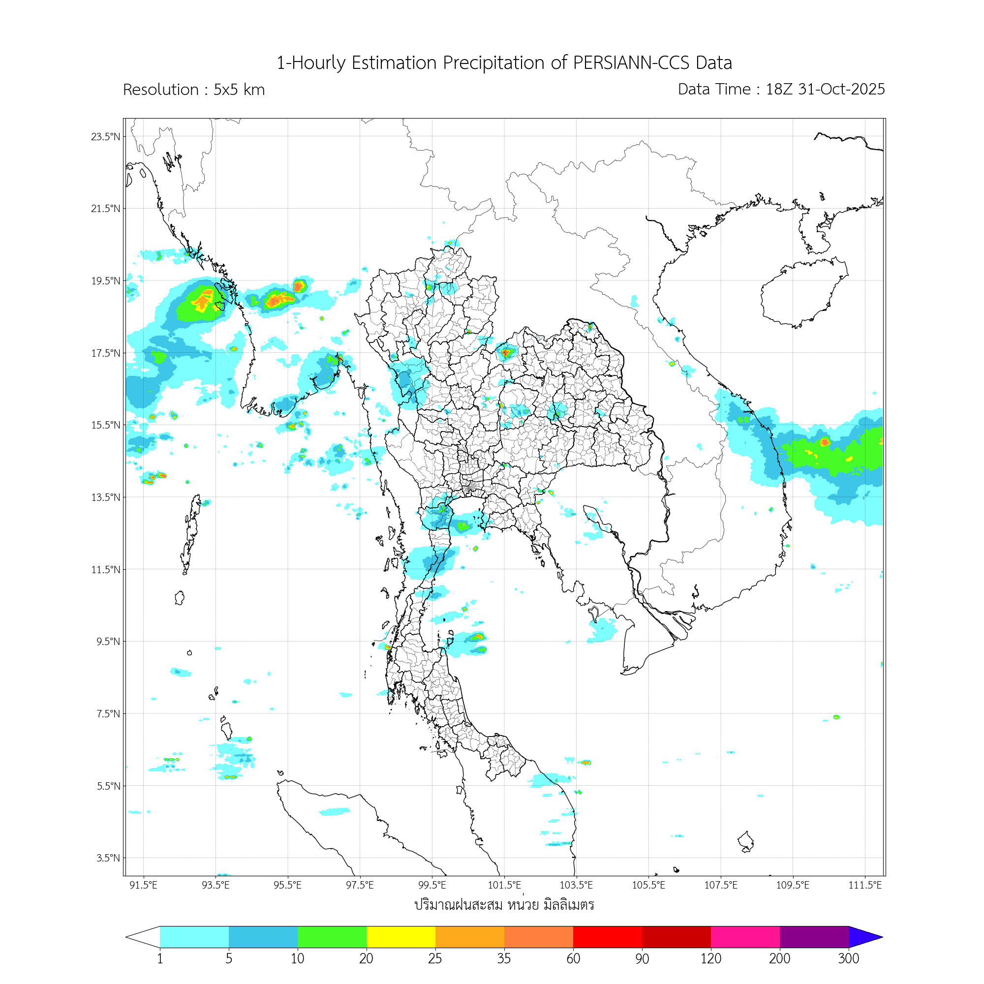 การประมาณค่าฝนจากดาวเทียม เมื่อวาน (31/10/2025)