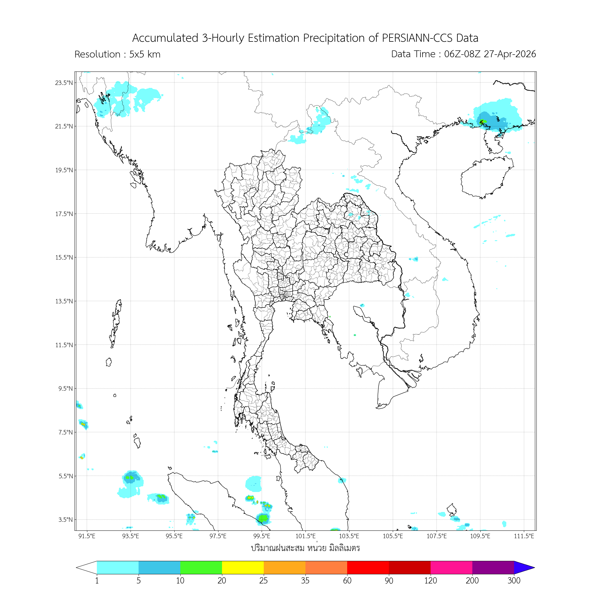 ค่าประมาณฝนสะสม 3 ชั่วโมง จากดาวเทียมอุตุนิยมวิทยา