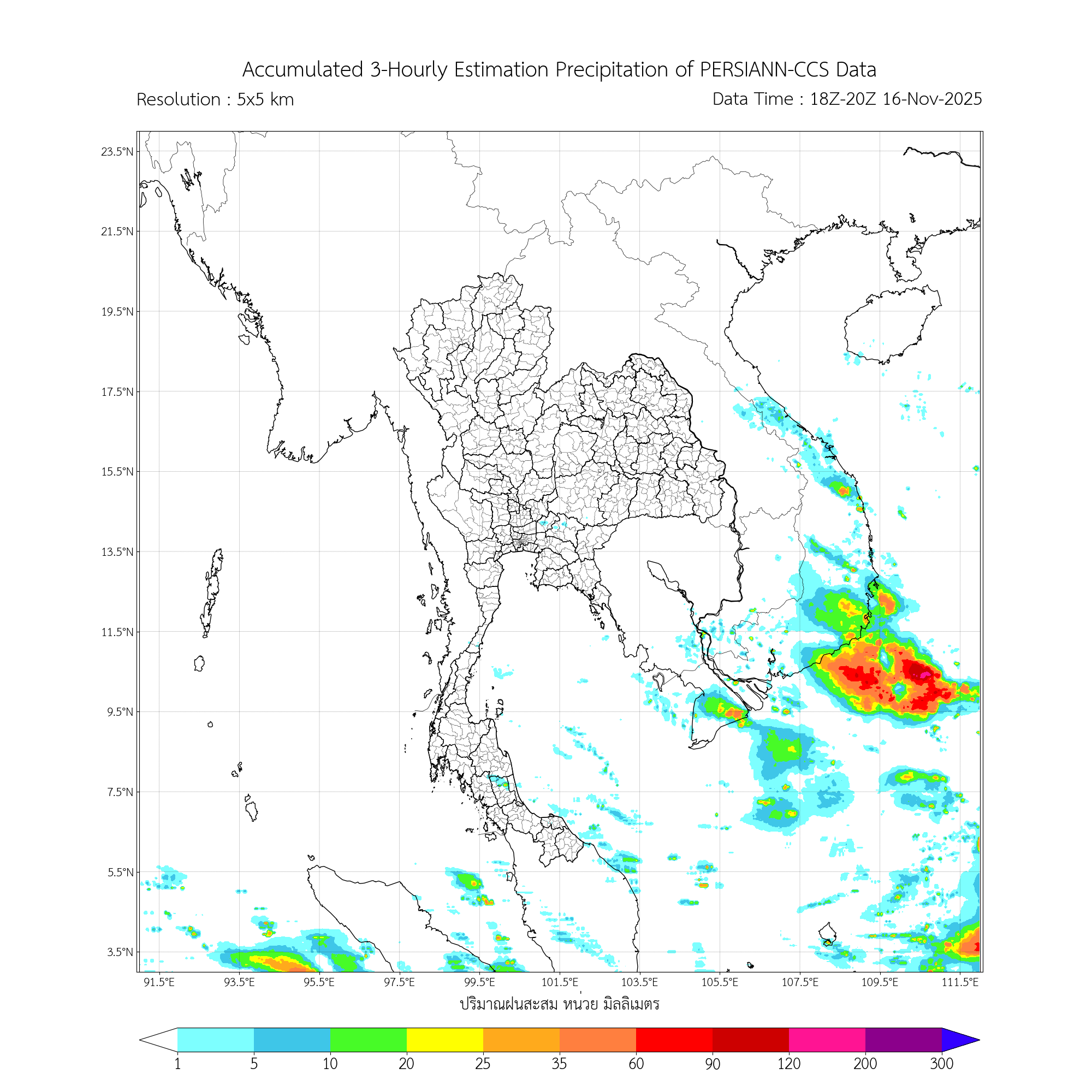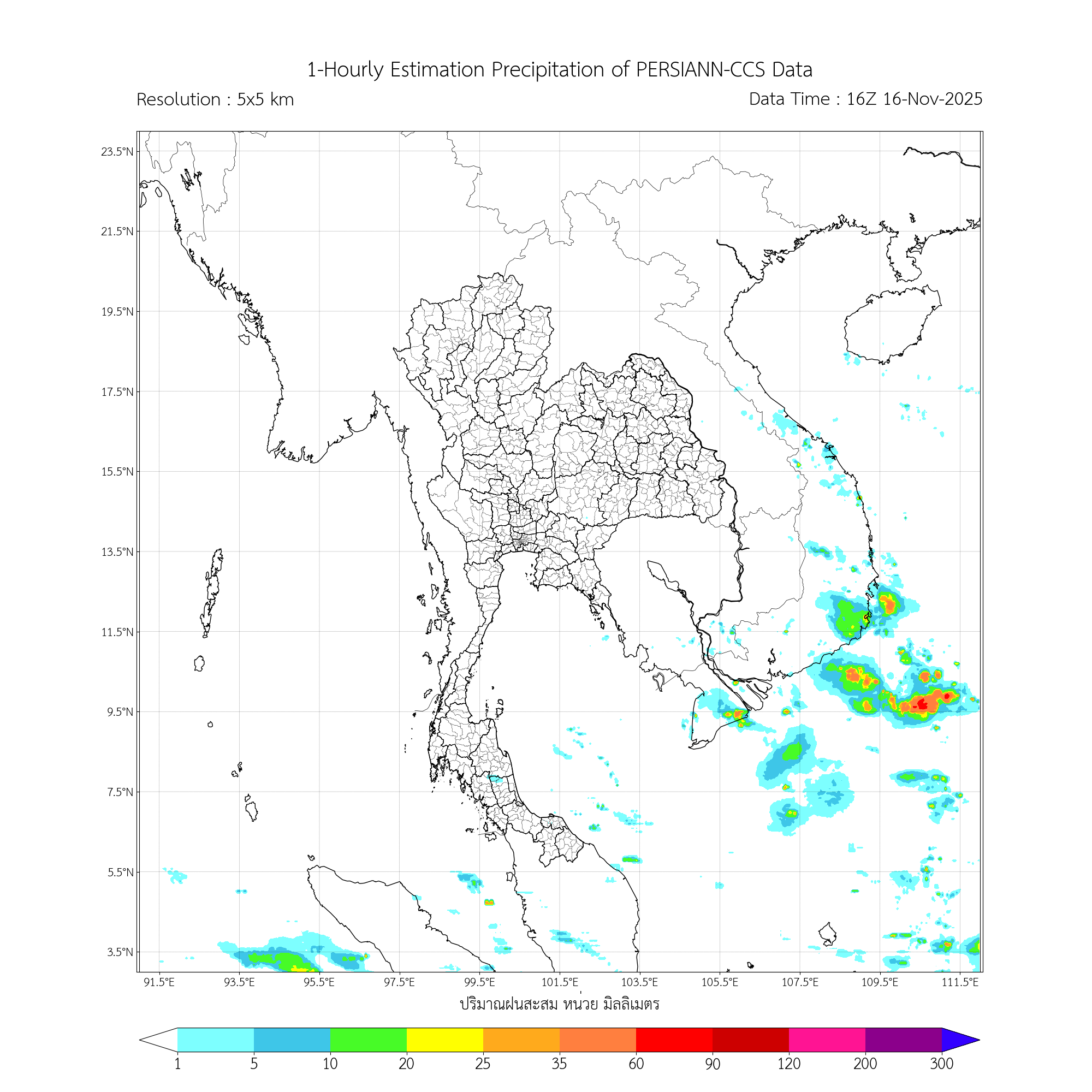การประมาณค่าฝนจากดาวเทียม เมื่อวาน (16/11/2025)