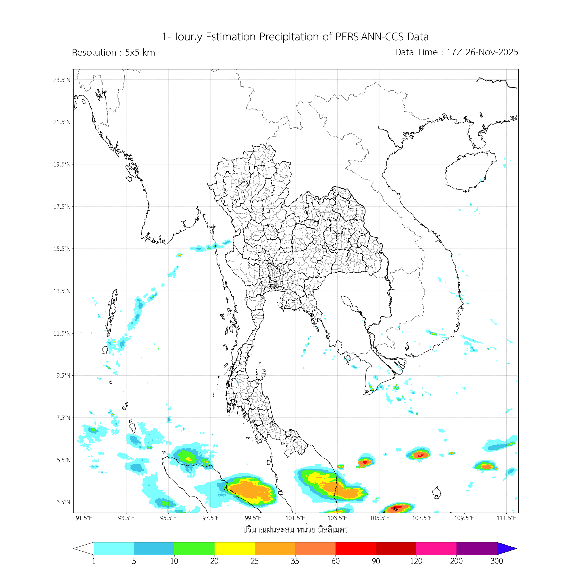 การประมาณค่าฝนจากดาวเทียม เมื่อวาน (26/11/2025)
