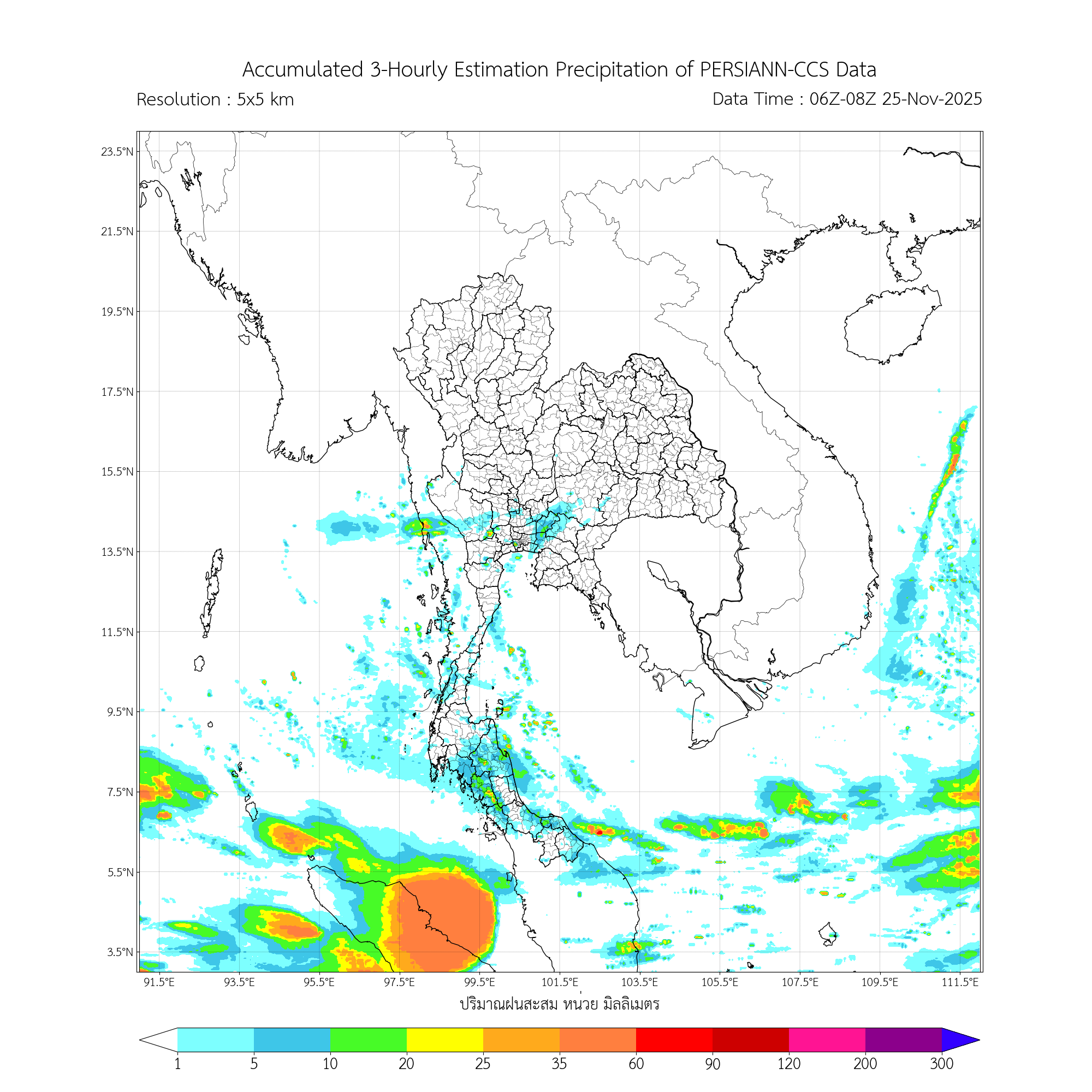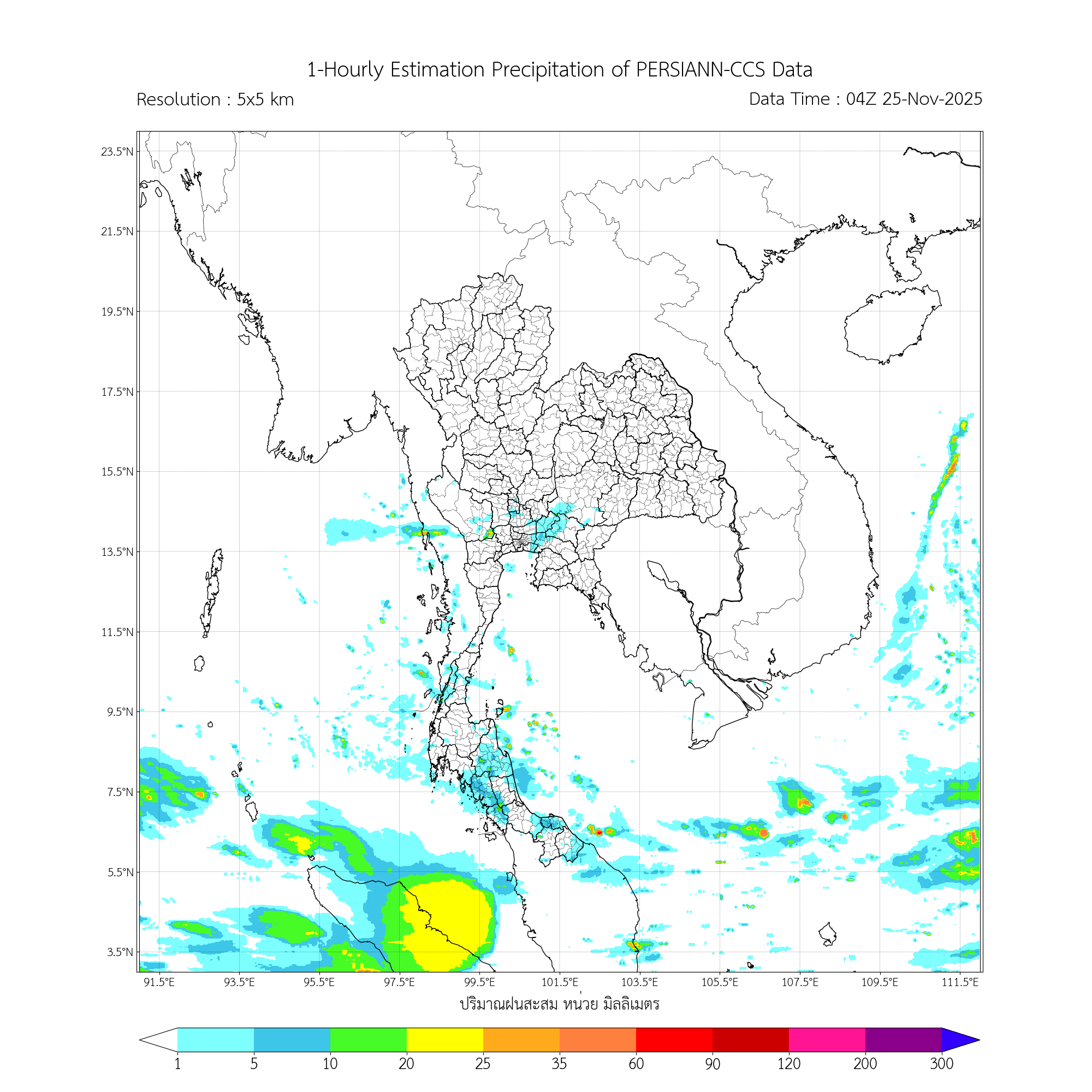 การประมาณค่าฝนจากดาวเทียม เมื่อวาน (24/11/2025)