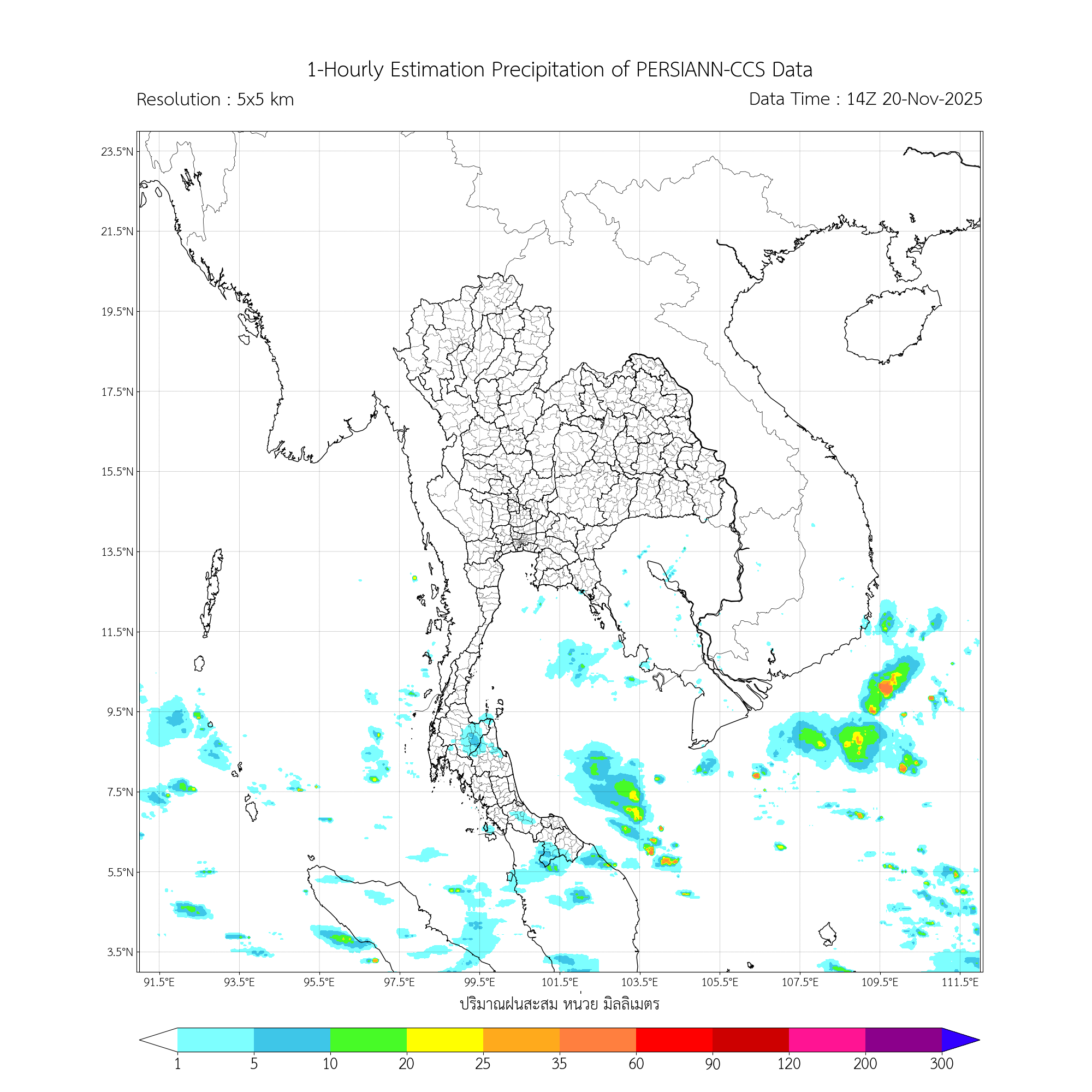 การประมาณค่าฝนจากดาวเทียม เมื่อวาน (19/11/2025)