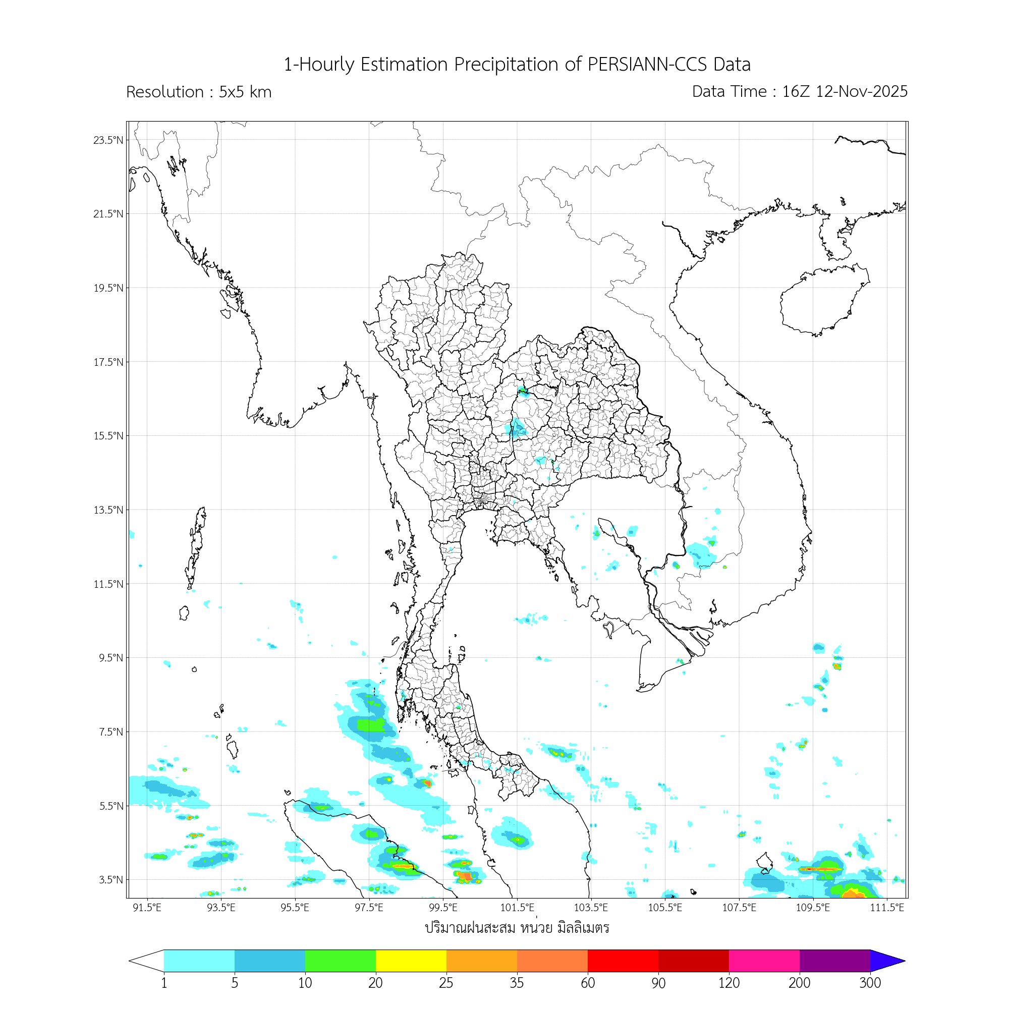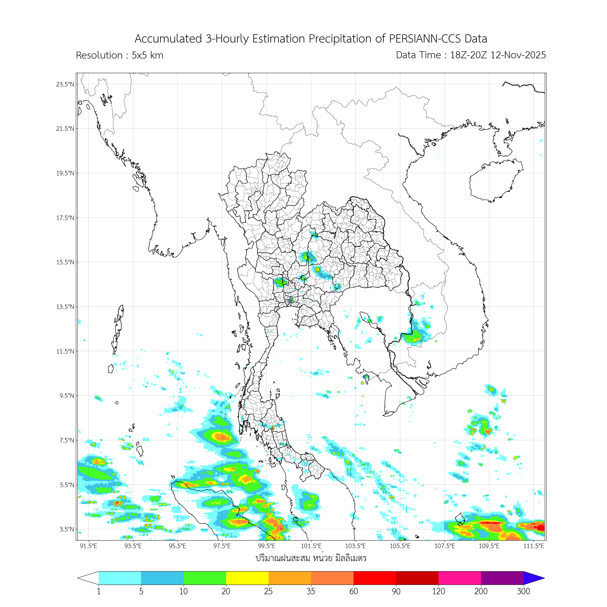การประมาณค่าฝนจากดาวเทียม เมื่อวาน (12/11/2025)