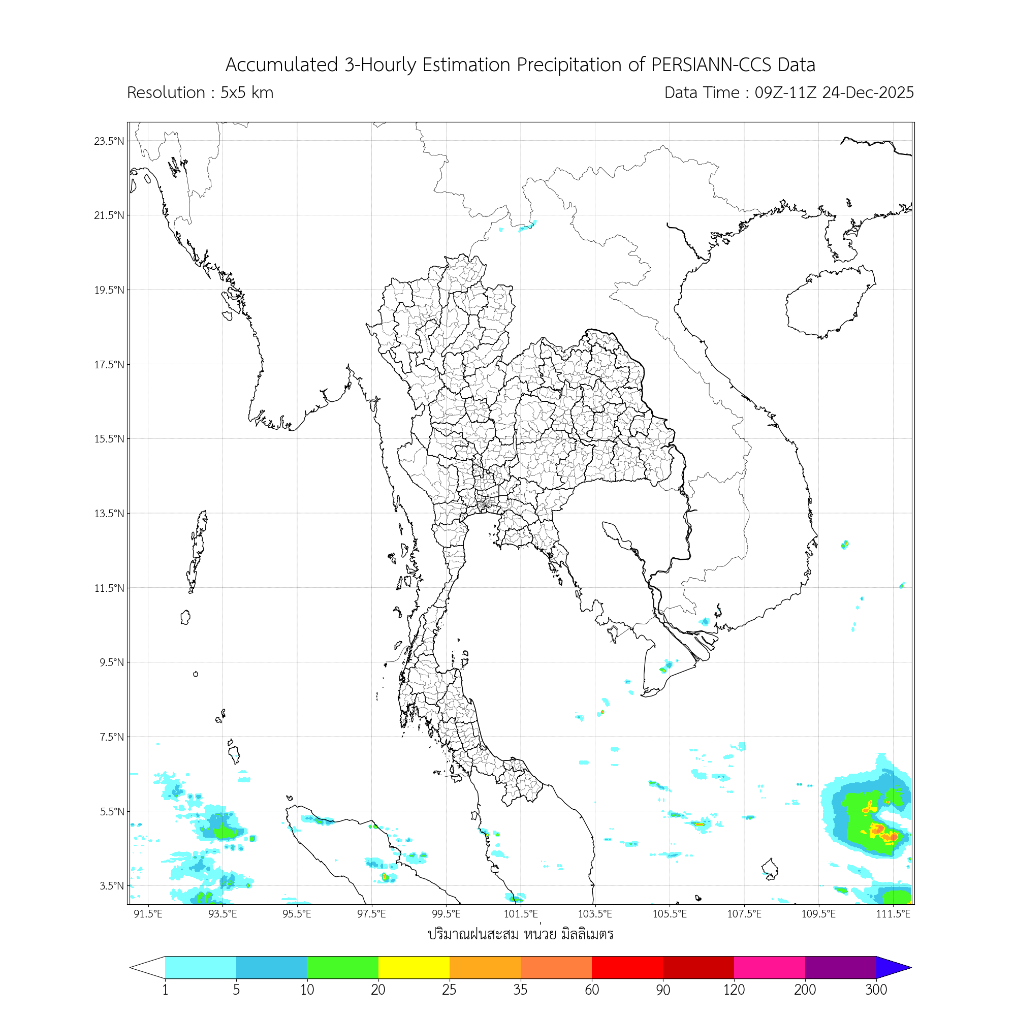 การประมาณค่าฝนจากดาวเทียม เมื่อวาน (23/12/2025)