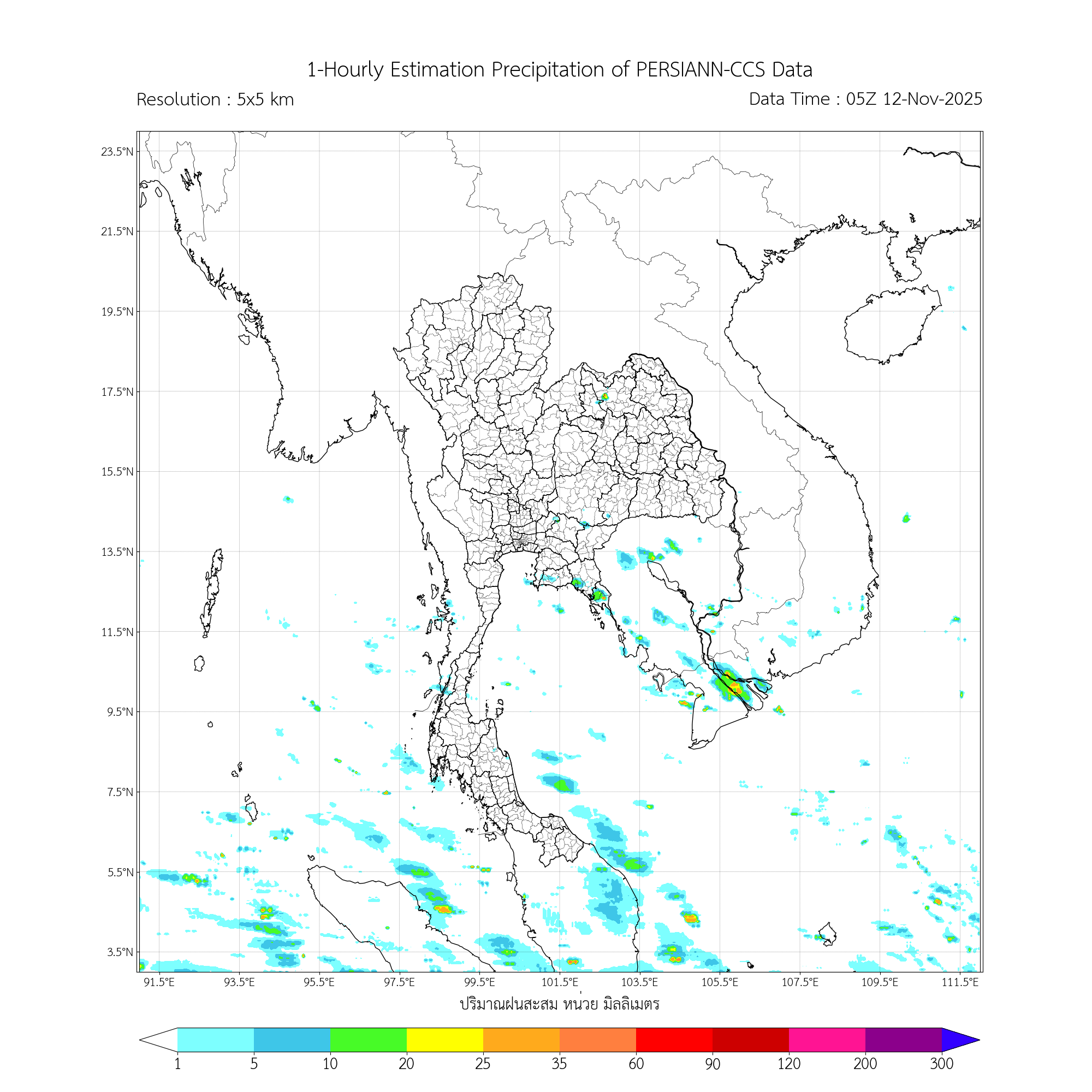 การประมาณค่าฝนจากดาวเทียม เมื่อวาน (11/11/2025)