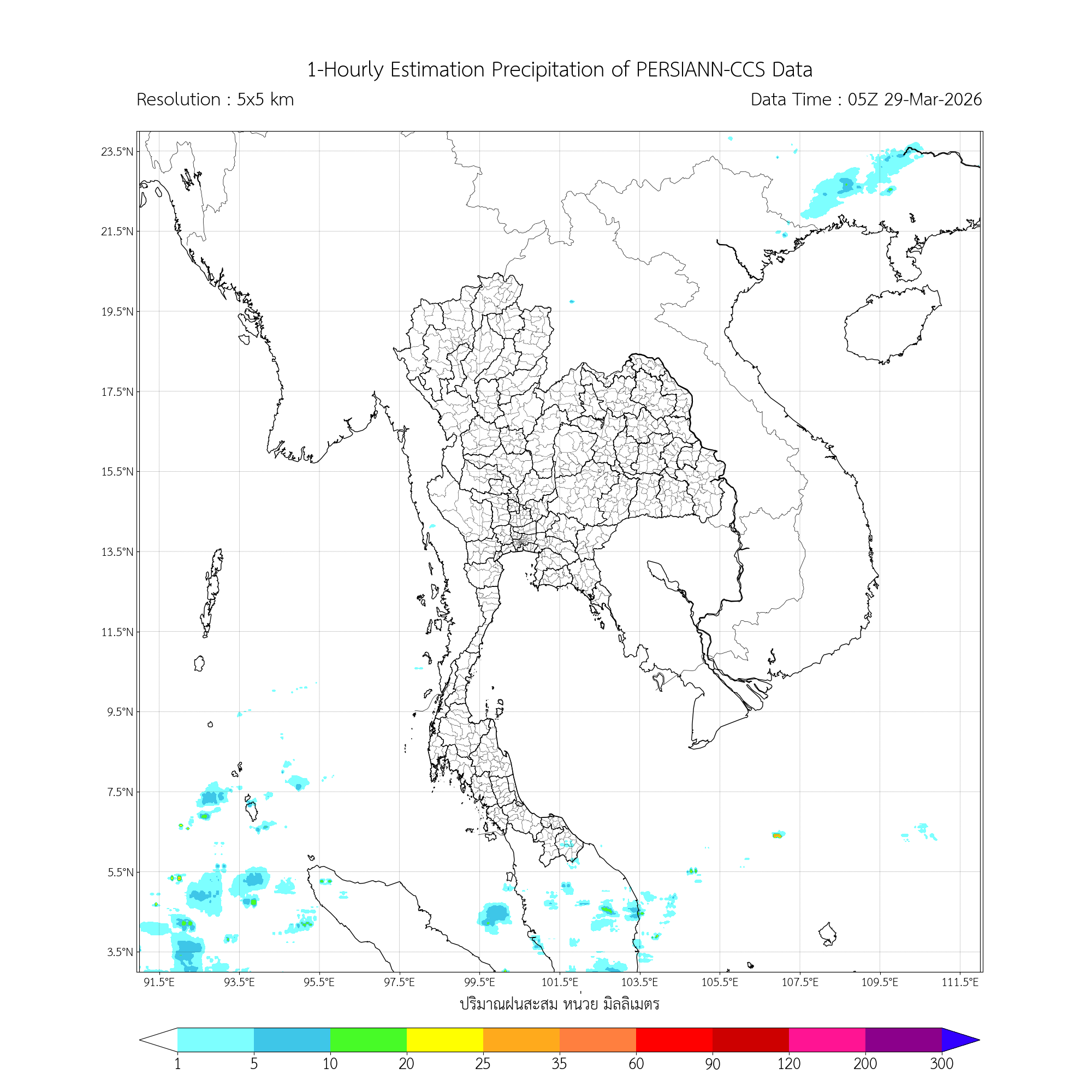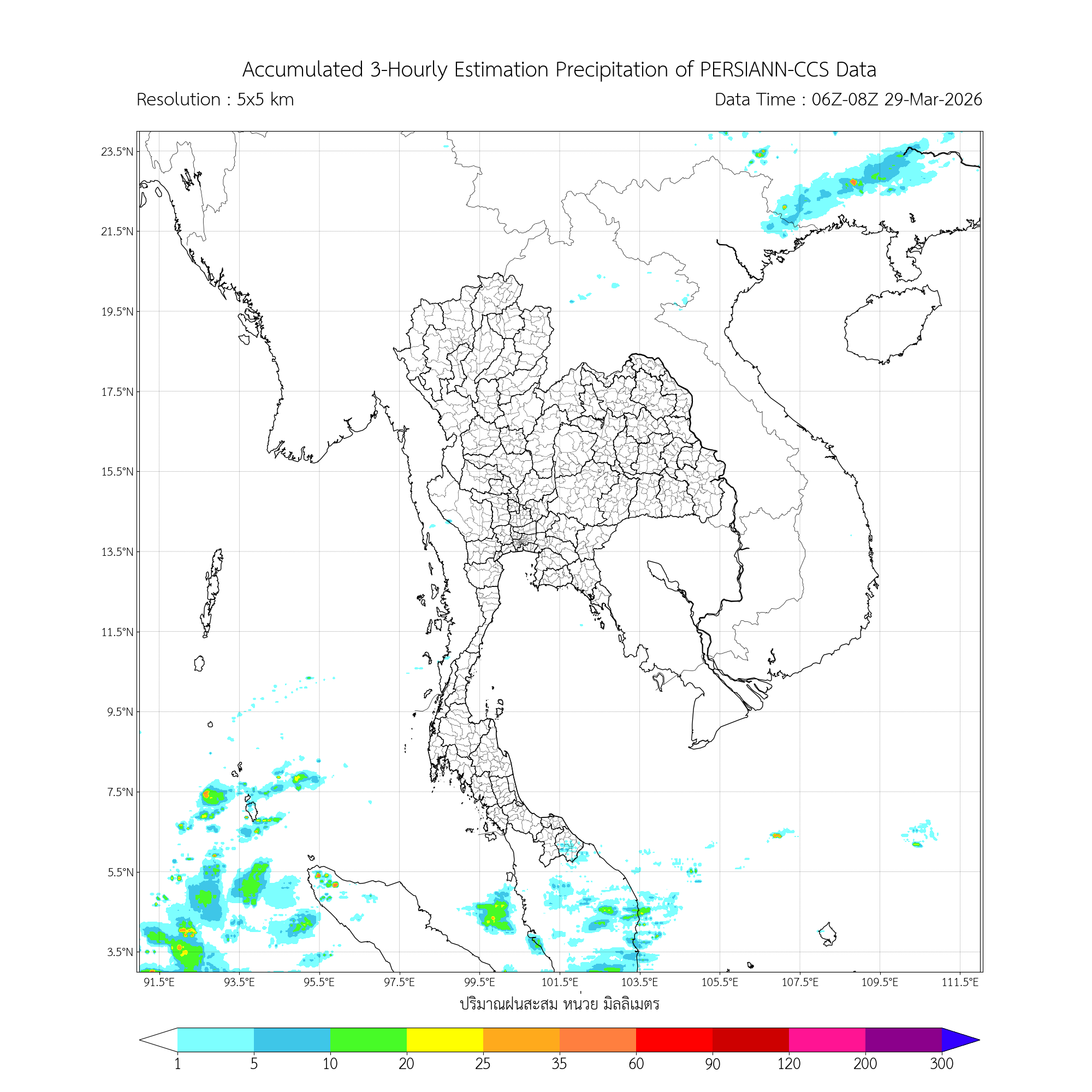 ค่าประมาณฝนสะสม 3 ชั่วโมง จากดาวเทียมอุตุนิยมวิทยา
