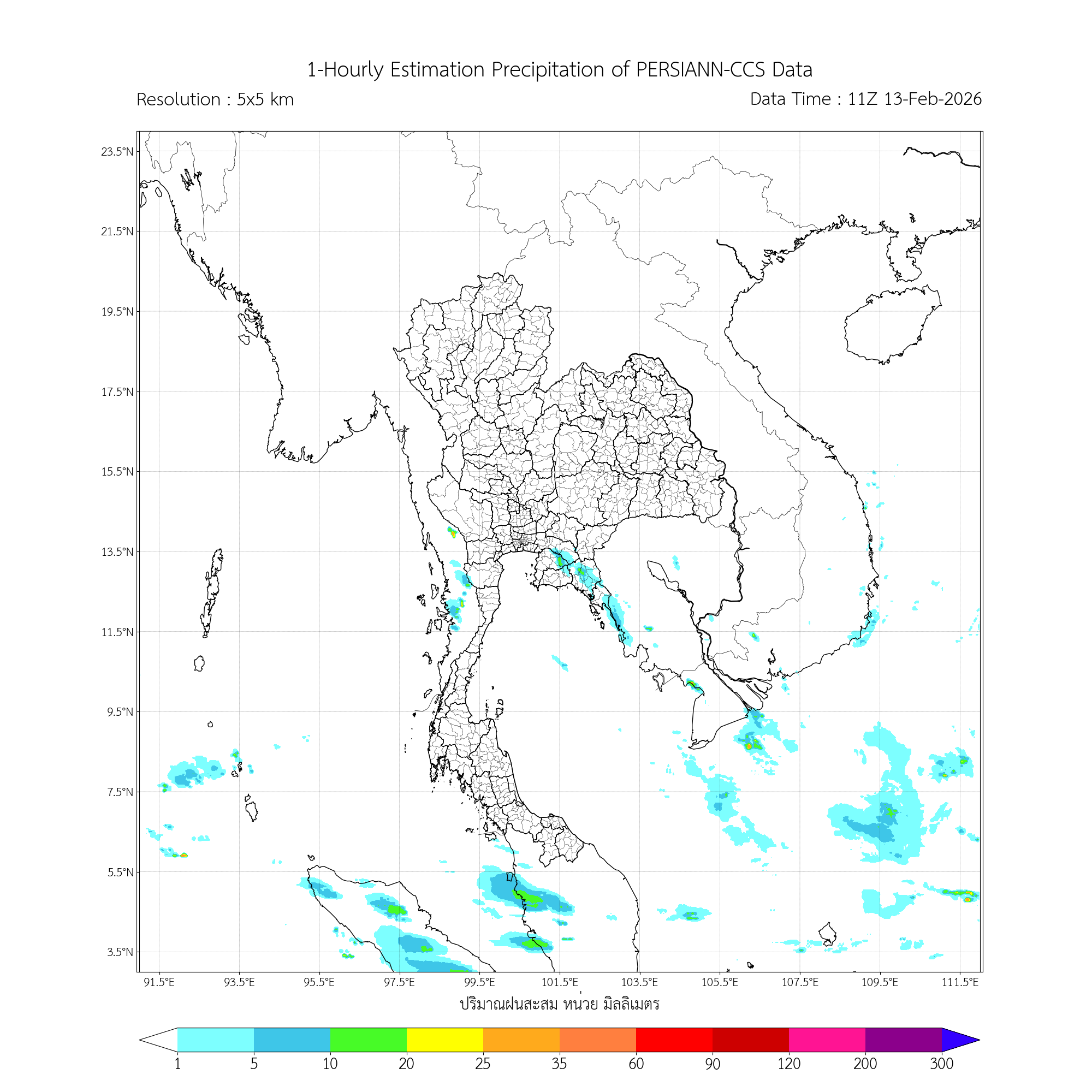 การประมาณค่าฝนจากดาวเทียม เมื่อวาน (12/02/2026)