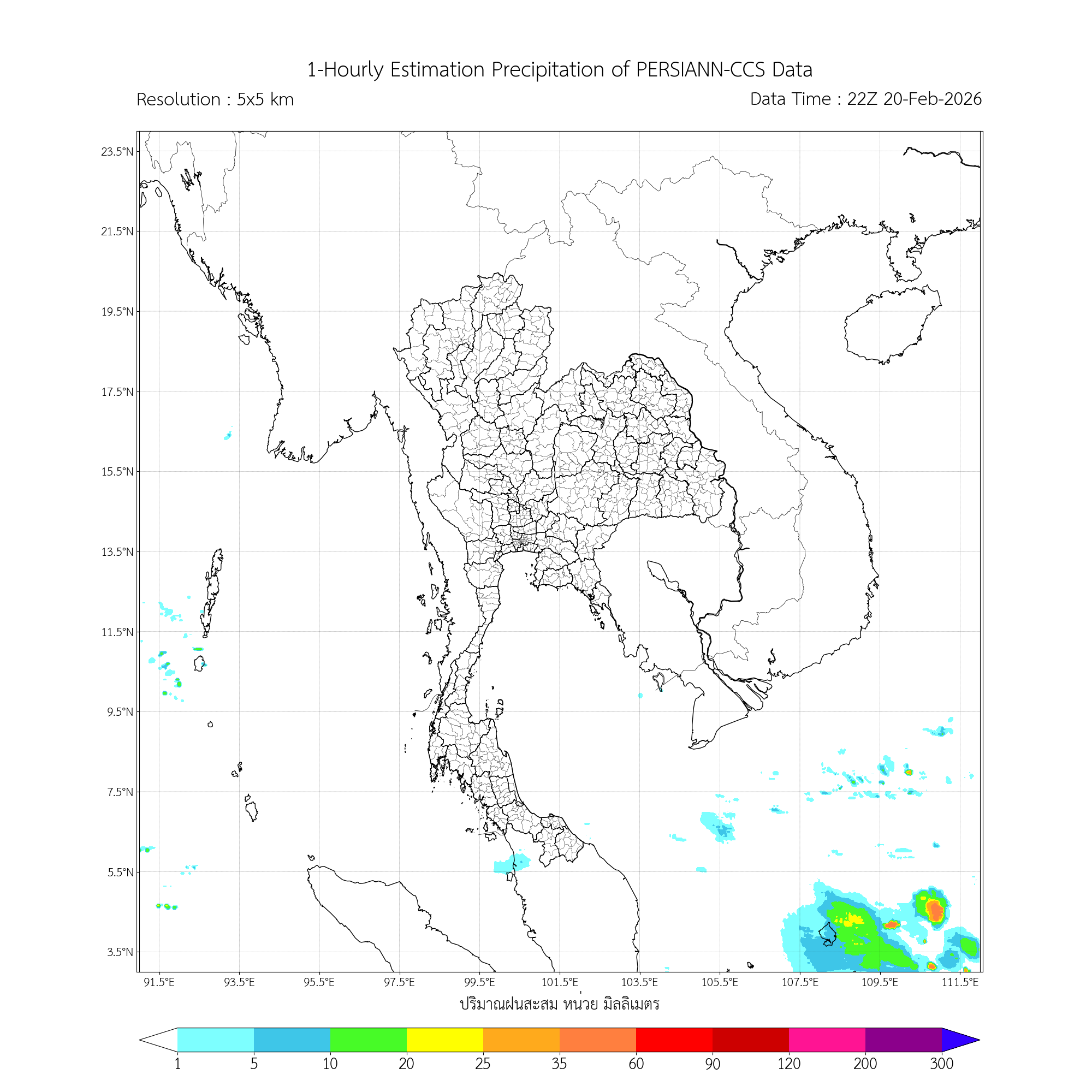 การประมาณค่าฝนจากดาวเทียม เมื่อวาน (20/02/2026)