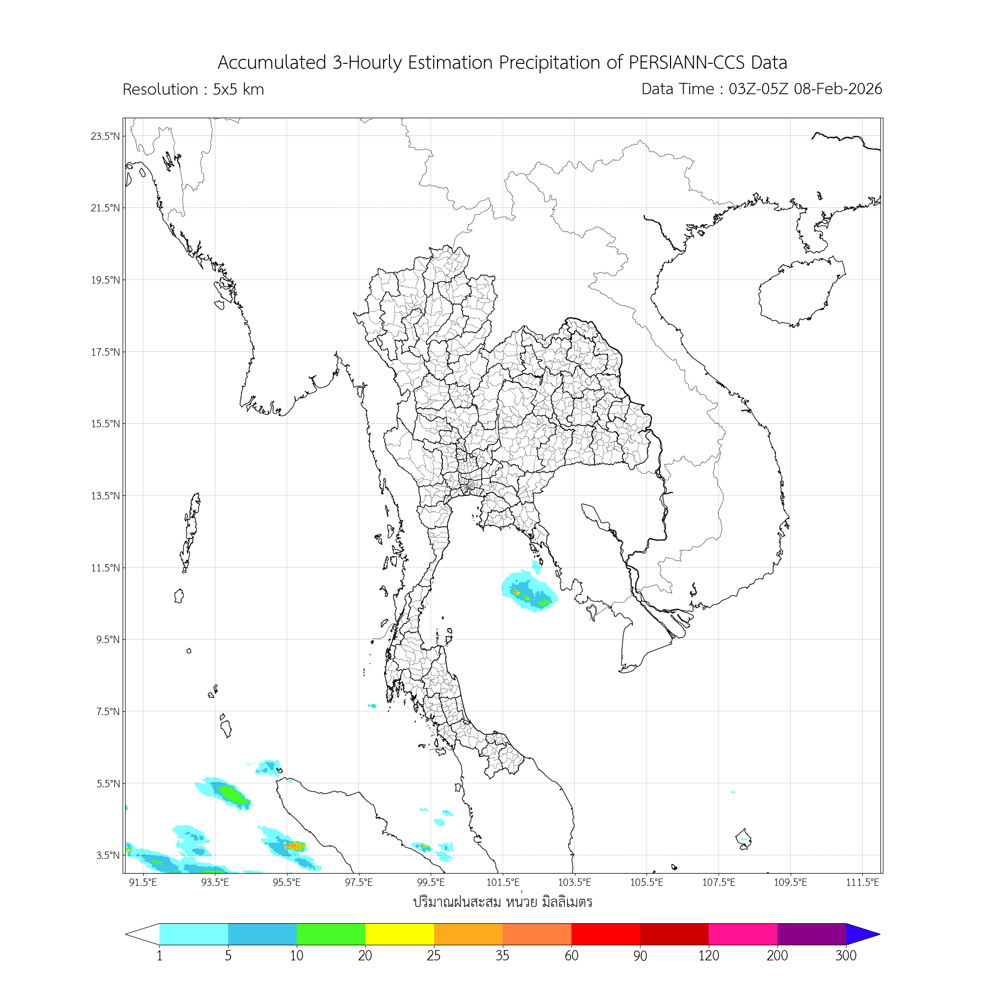 ค่าประมาณฝนสะสม 3 ชั่วโมง จากดาวเทียมอุตุนิยมวิทยา