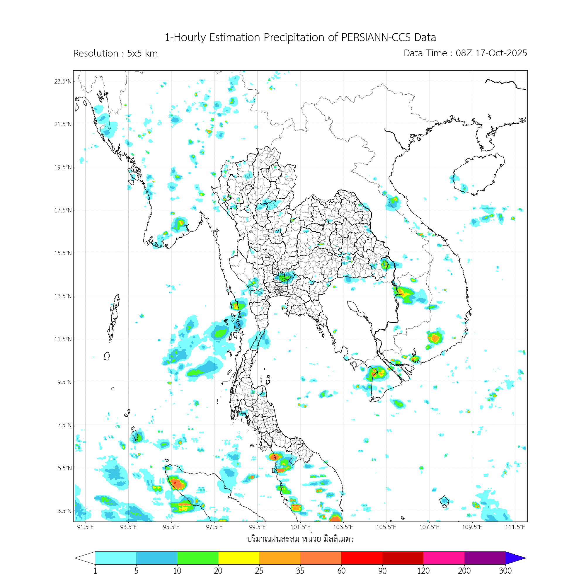 การประมาณค่าฝนจากดาวเทียม เมื่อวาน (16/10/2025)