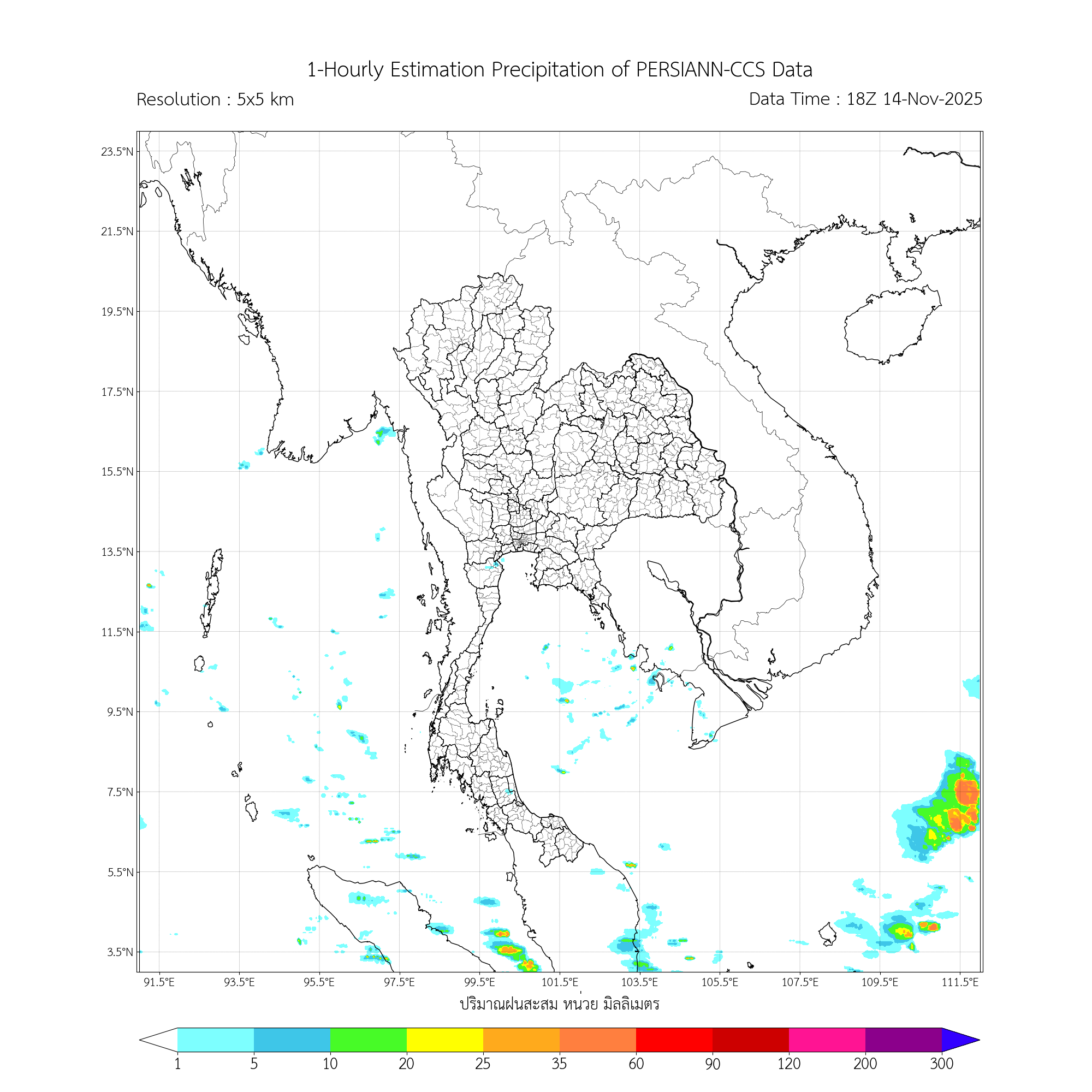 การประมาณค่าฝนจากดาวเทียม เมื่อวาน (14/11/2025)
