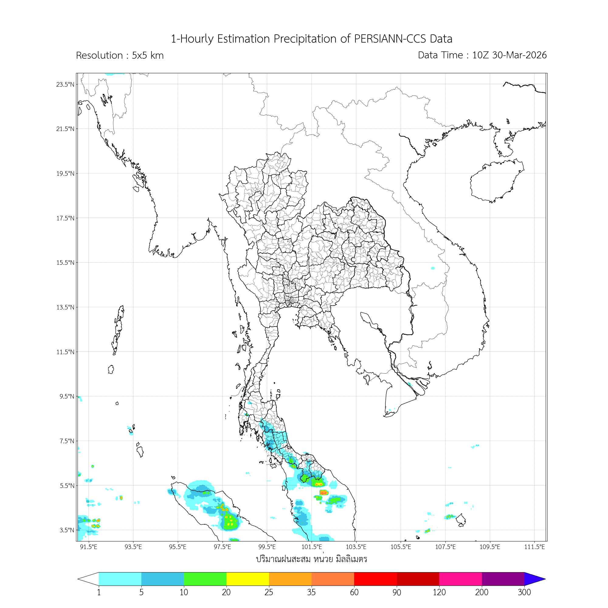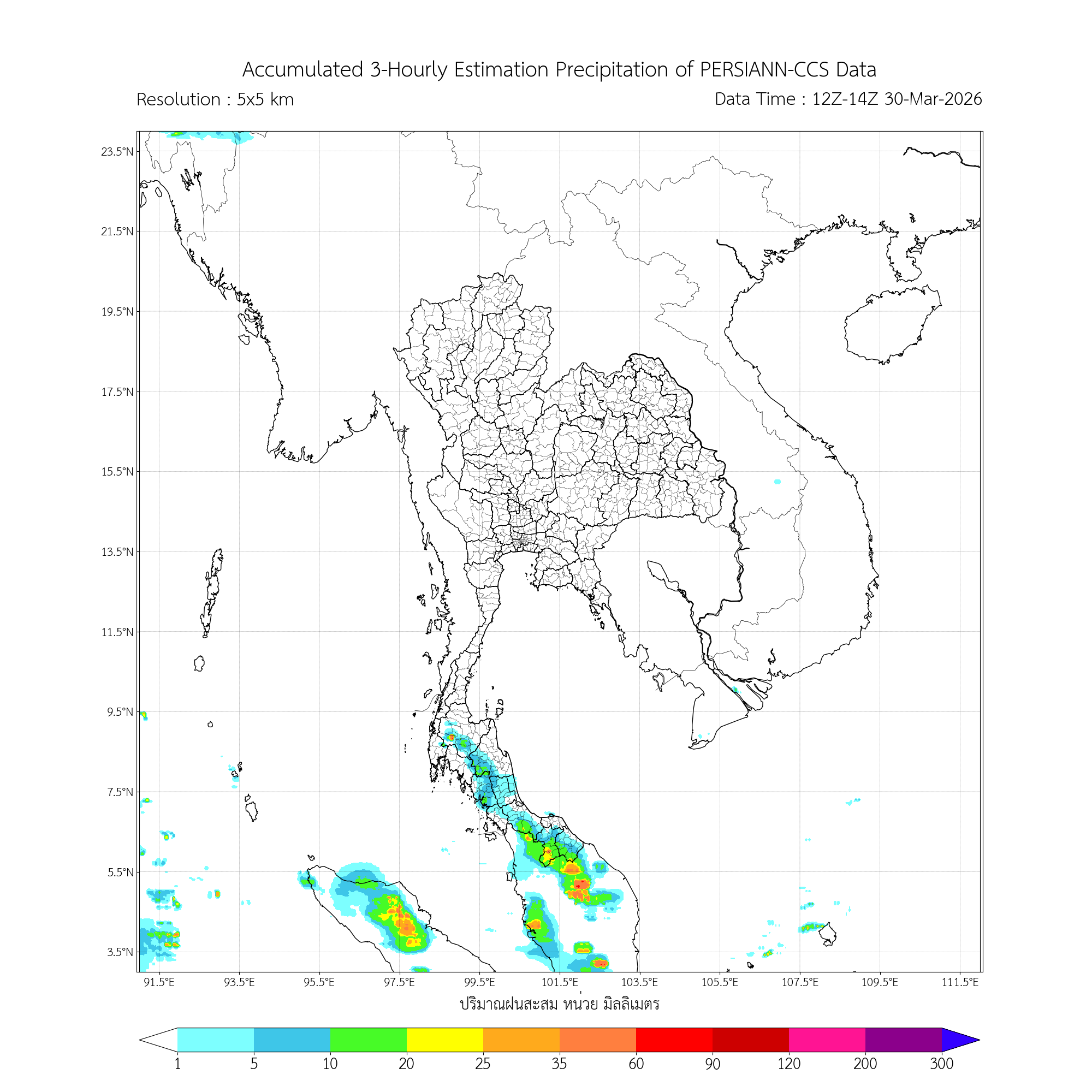 ค่าประมาณฝนสะสม 3 ชั่วโมง จากดาวเทียมอุตุนิยมวิทยา