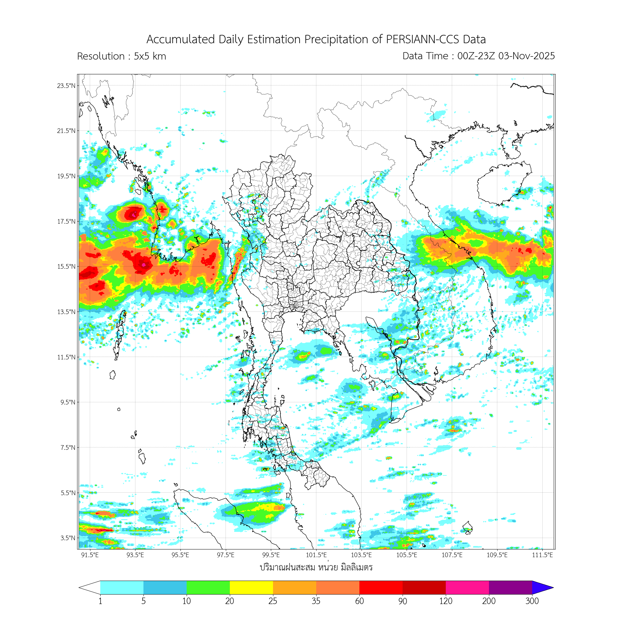 การประมาณค่าฝนจากดาวเทียม เมื่อวาน (02/11/2025)
