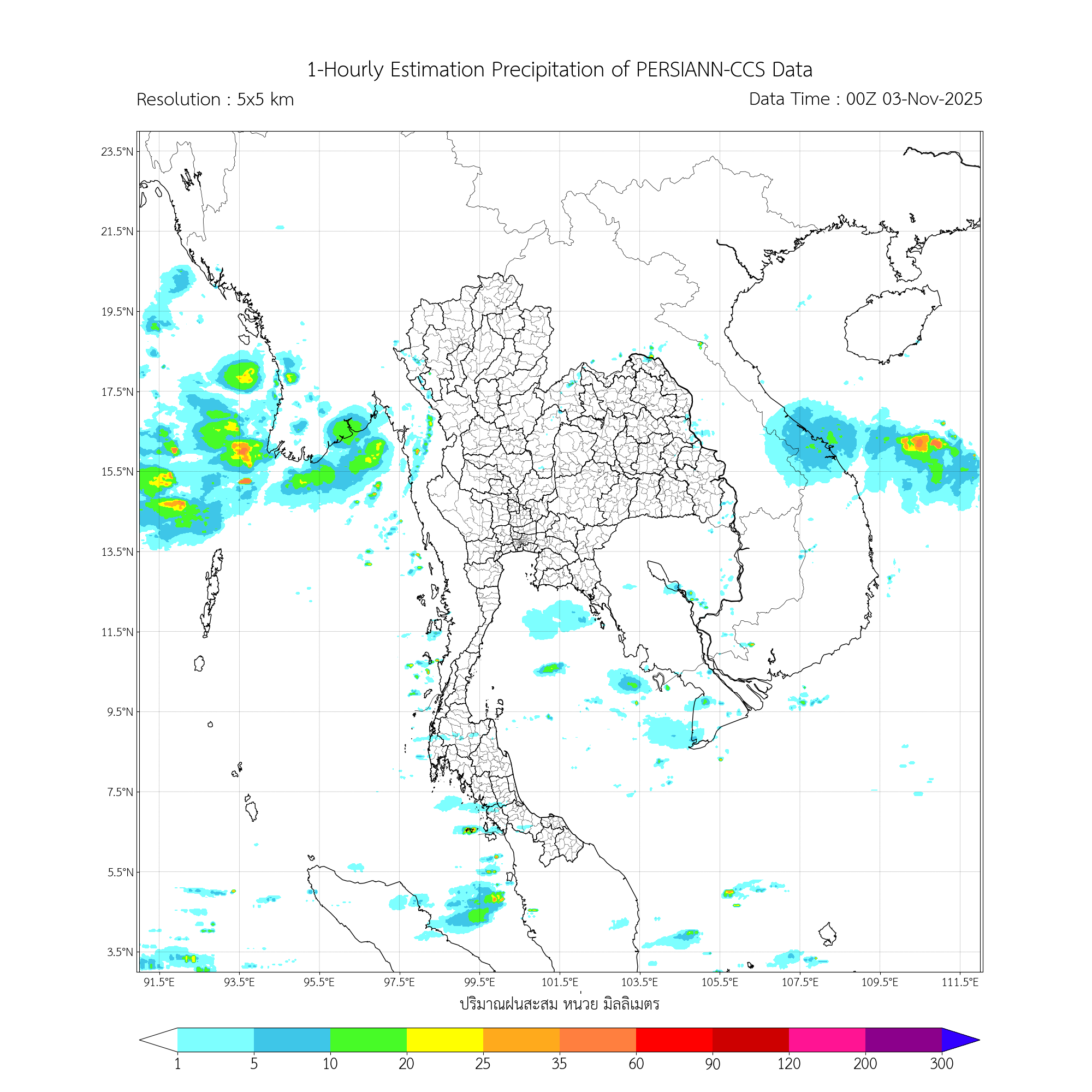 ค่าประมาณฝนสะสม 3 ชั่วโมง จากดาวเทียมอุตุนิยมวิทยา