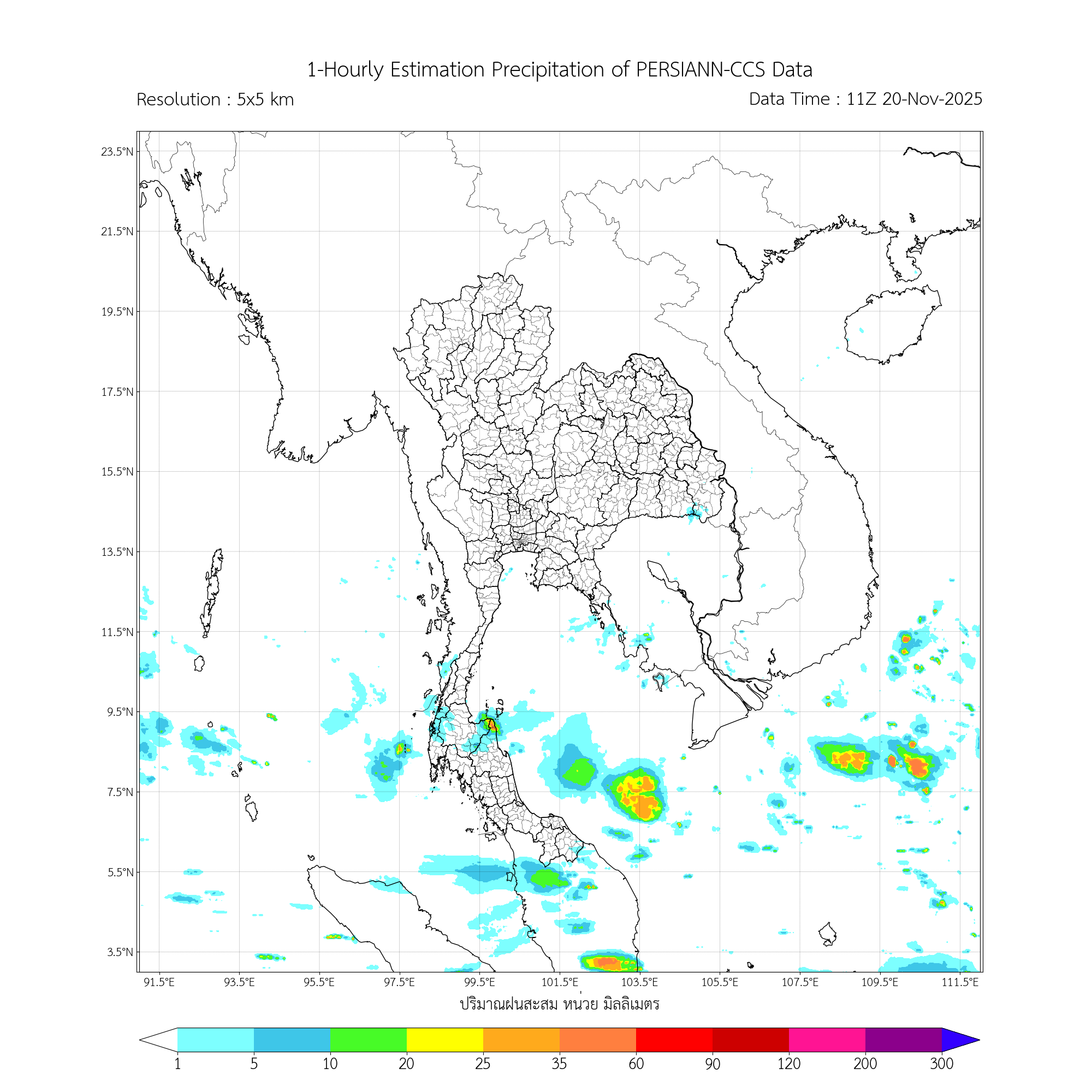 การประมาณค่าฝนจากดาวเทียม เมื่อวาน (19/11/2025)