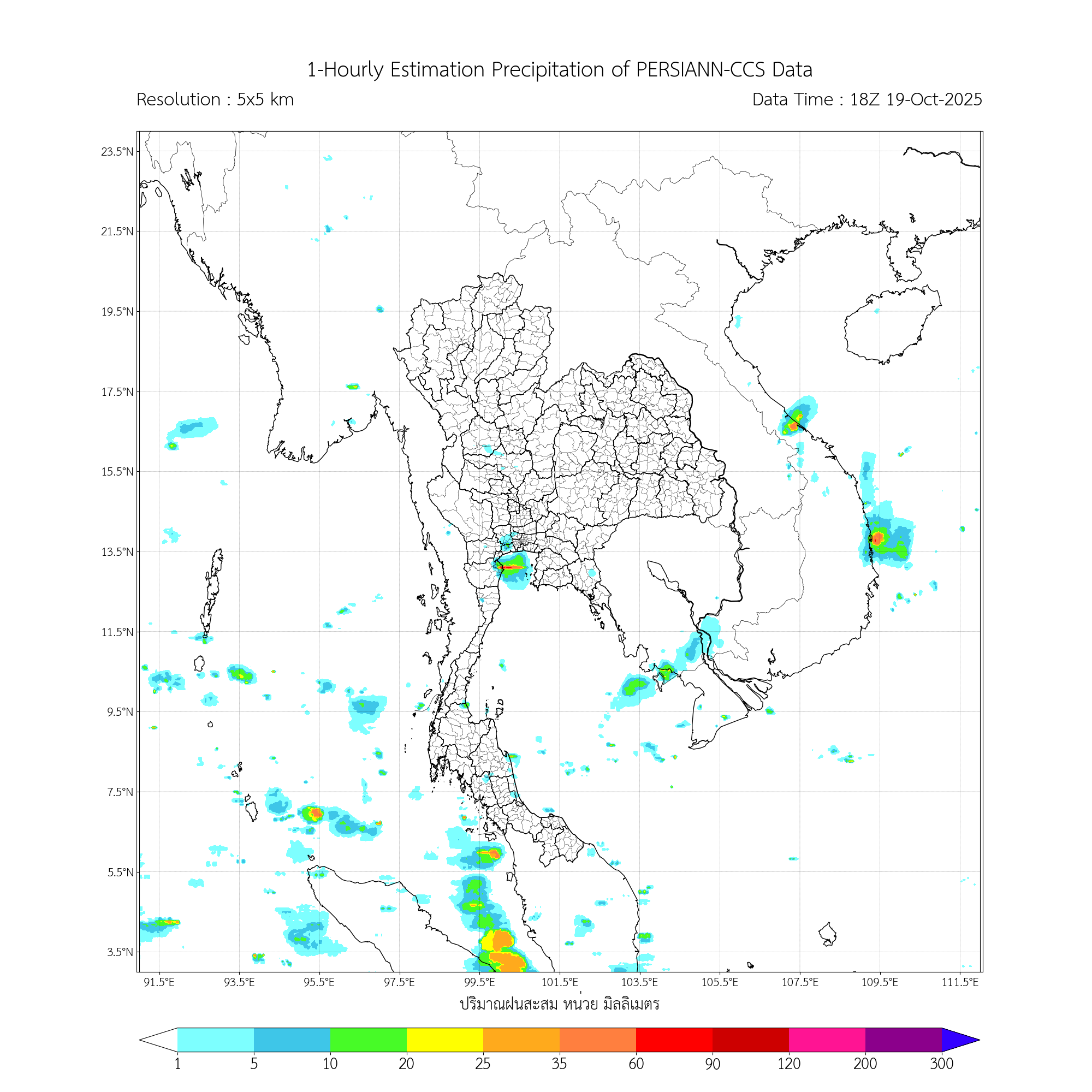 การประมาณค่าฝนจากดาวเทียม เมื่อวาน (19/10/2025)