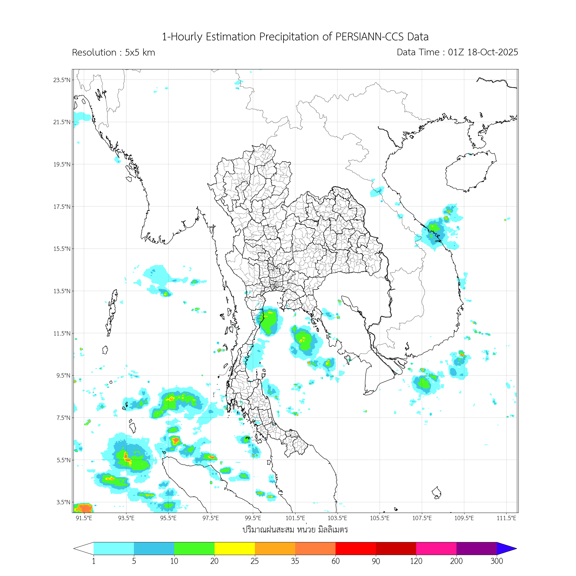 การประมาณค่าฝนจากดาวเทียม เมื่อวาน (17/10/2025)