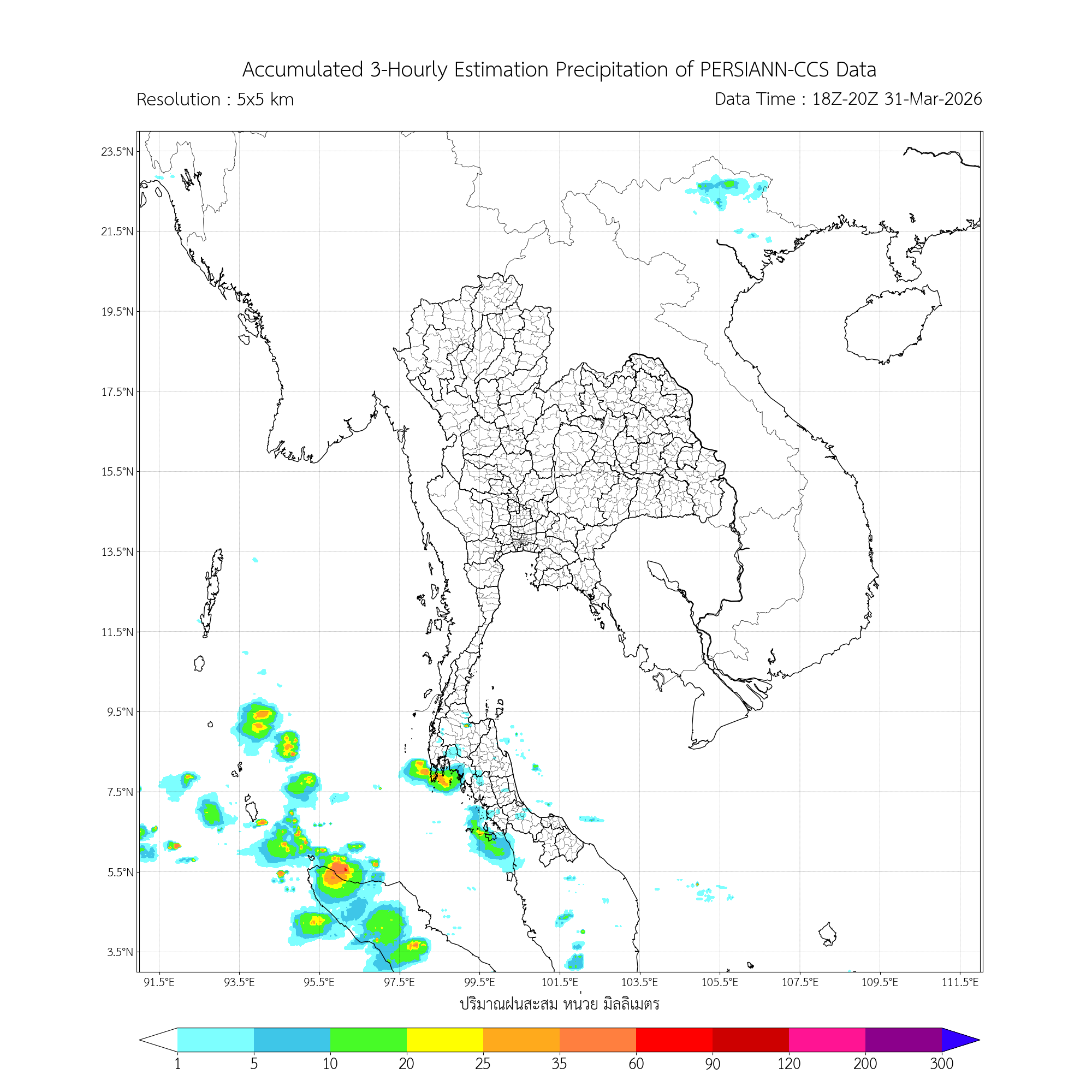 การประมาณค่าฝนจากดาวเทียม เมื่อวาน (31/03/2026)