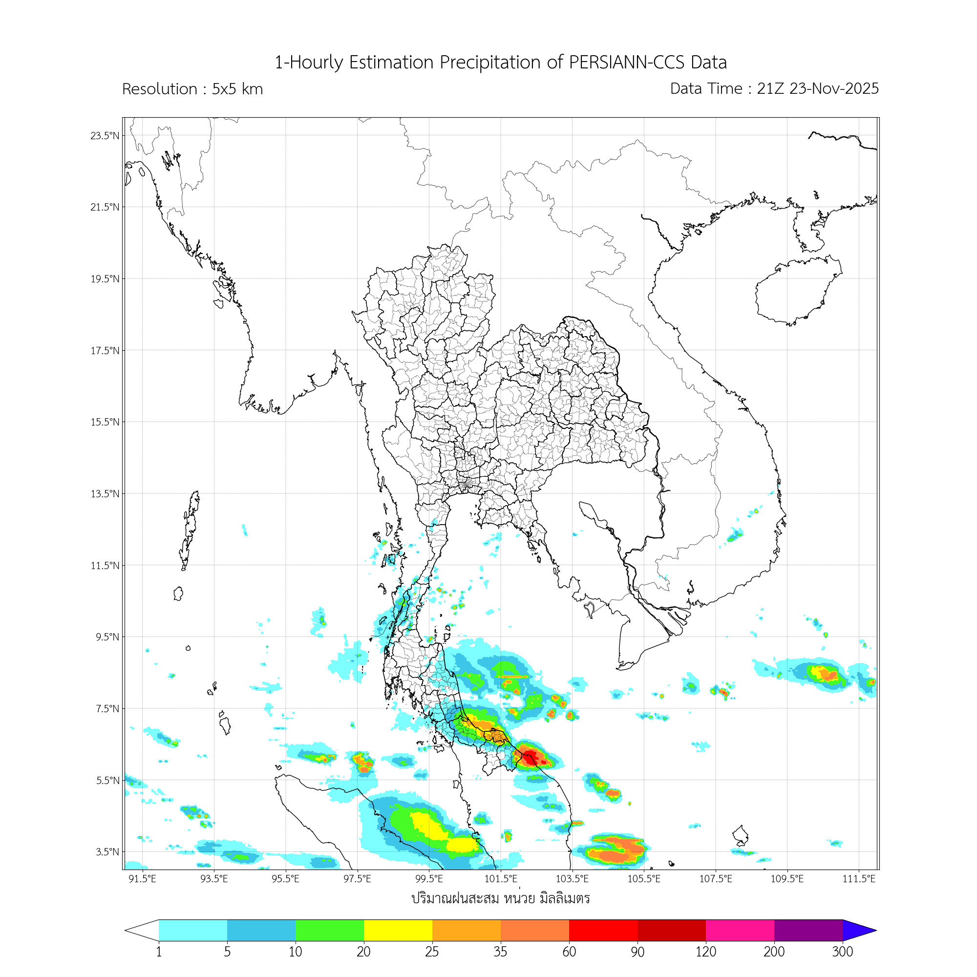 การประมาณค่าฝนจากดาวเทียม เมื่อวาน (23/11/2025)