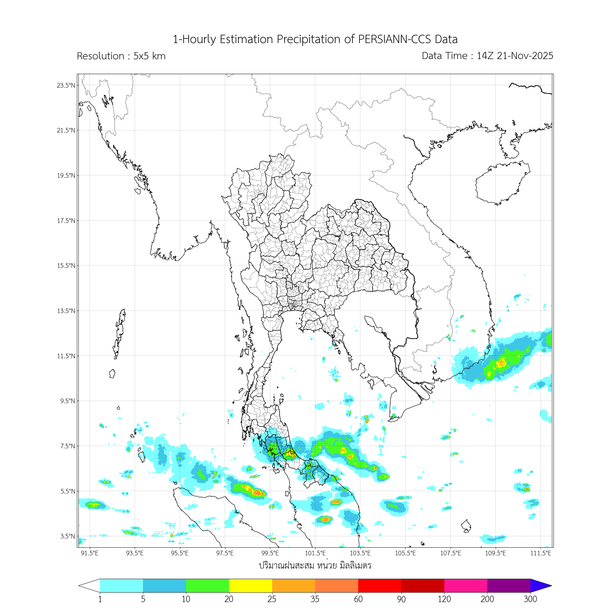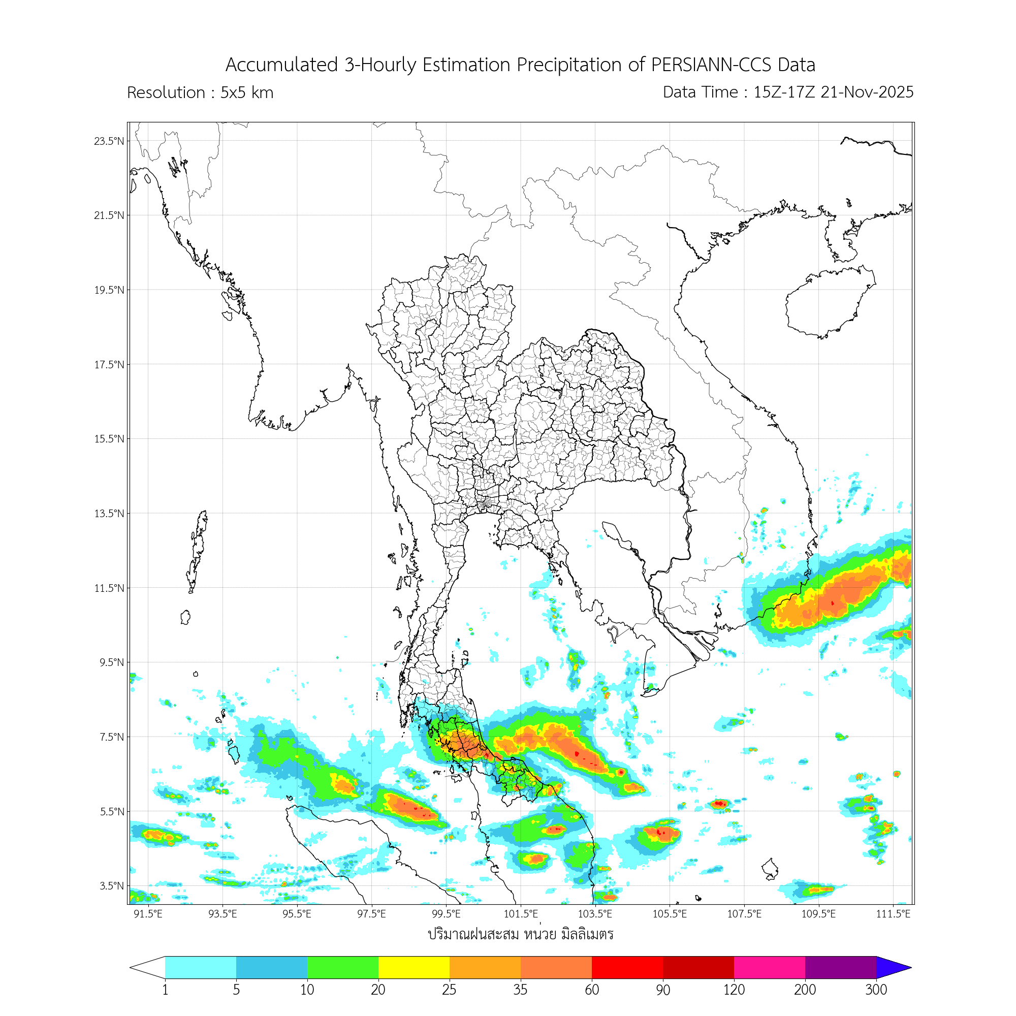 การประมาณค่าฝนจากดาวเทียม เมื่อวาน (20/11/2025)