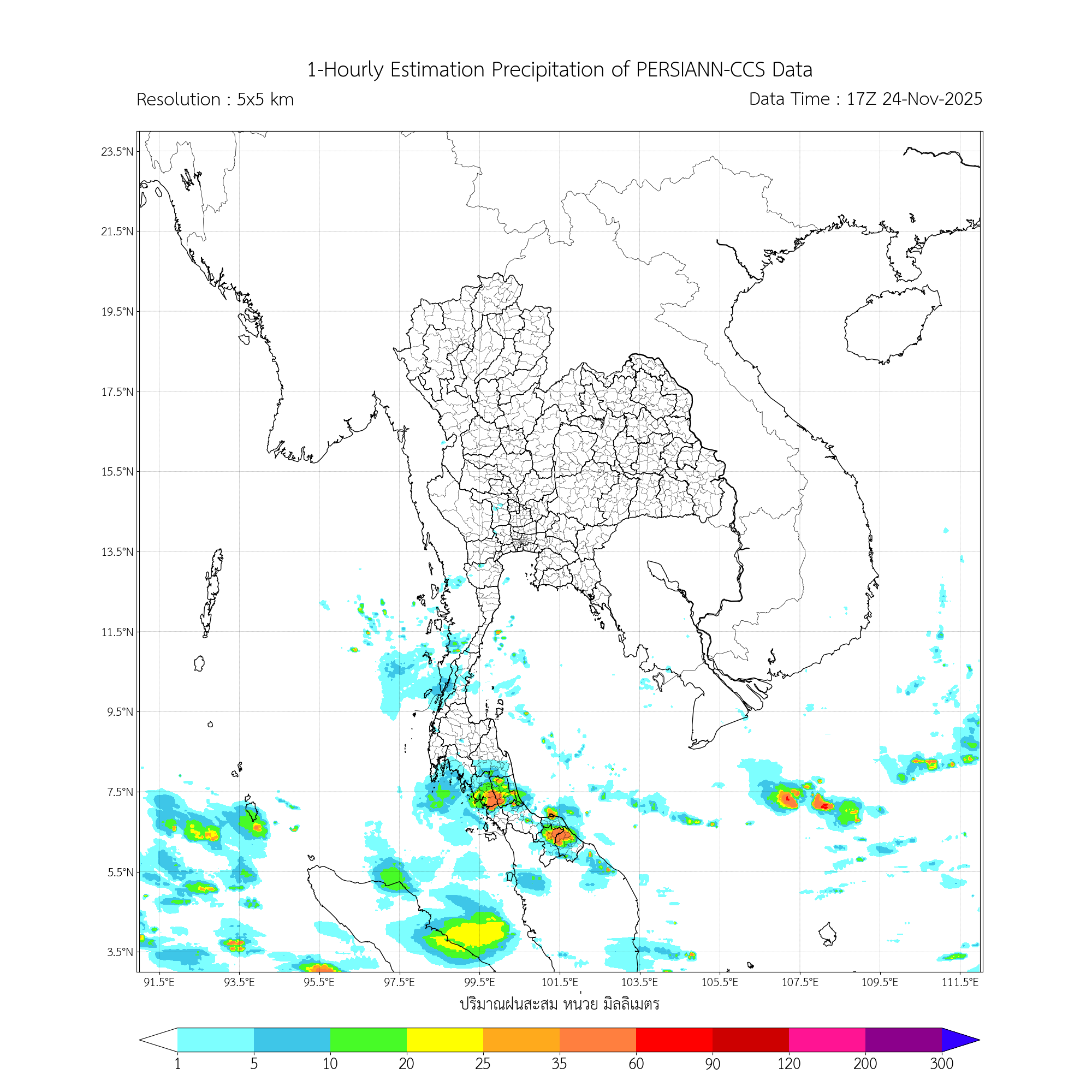 การประมาณค่าฝนจากดาวเทียม เมื่อวาน (24/11/2025)