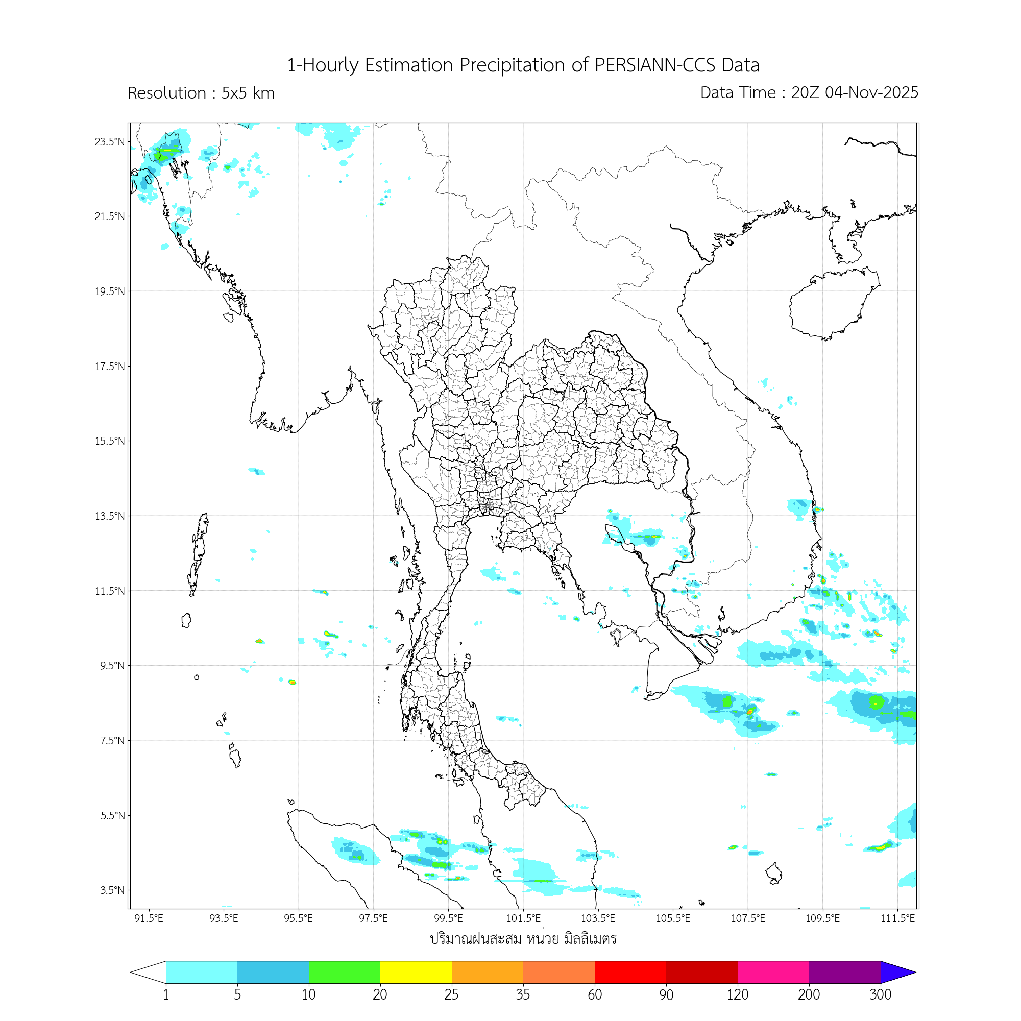 การประมาณค่าฝนจากดาวเทียม เมื่อวาน (04/11/2025)