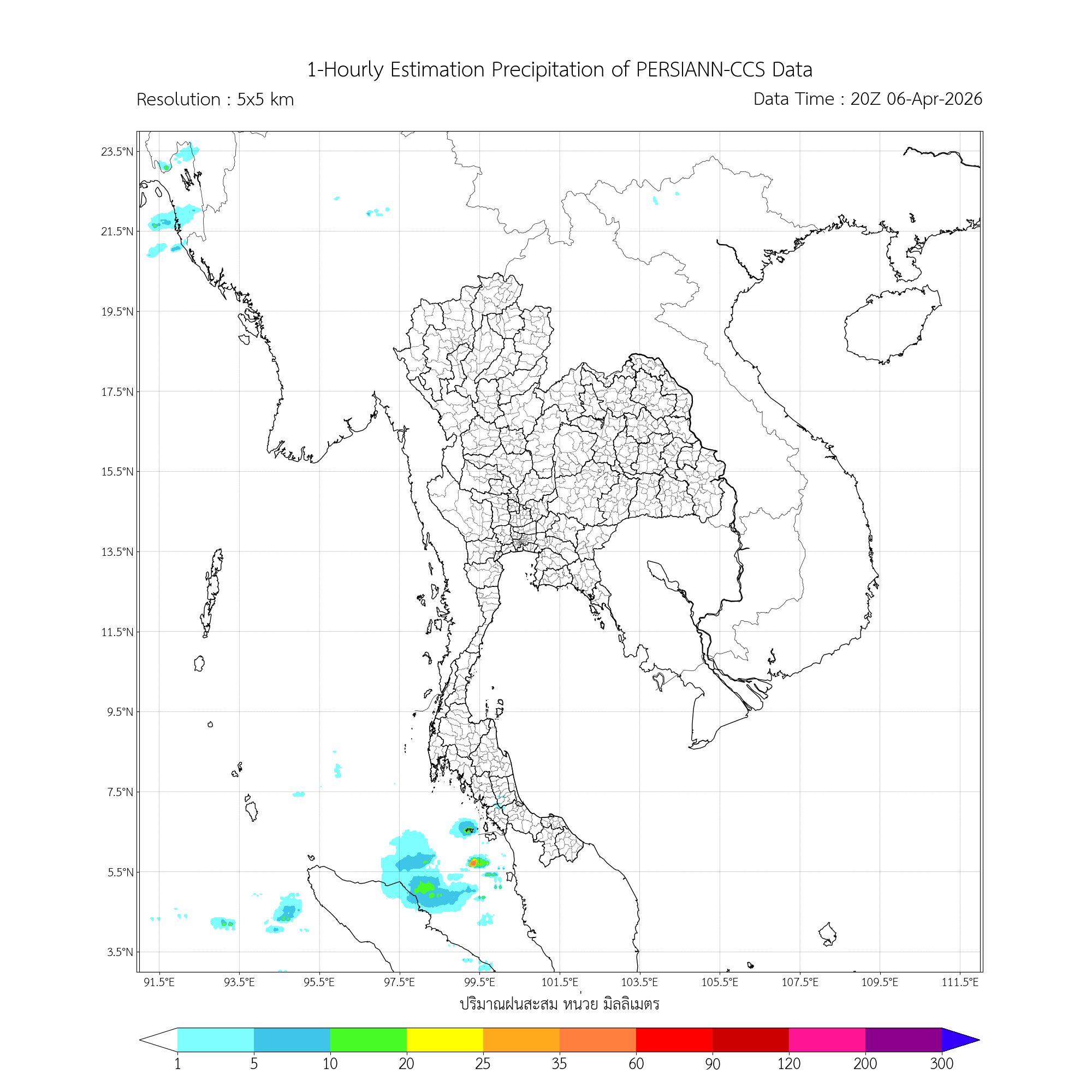 การประมาณค่าฝนจากดาวเทียม เมื่อวาน (06/04/2026)